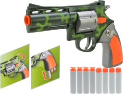 Το σετ περιλαμβάνει ένα συμπαγές πιστόλι με μοτίβο καμουφλάζ, άνετο στο κράτημα με το ένα χέρι. Τα βλήματα από αφρό και μαλακό καουτσούκ εξασφαλίζουν μέγιστη ασφάλεια και ελαφρότητα. Το σετ περιλαμβάνει 6 βλήματα.