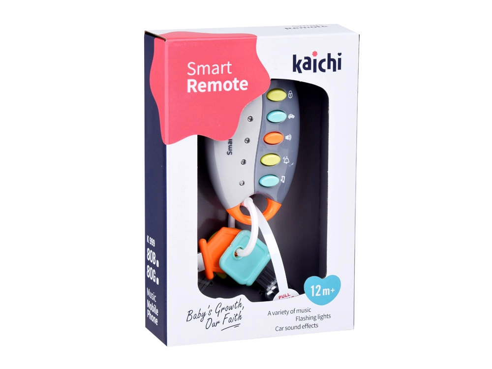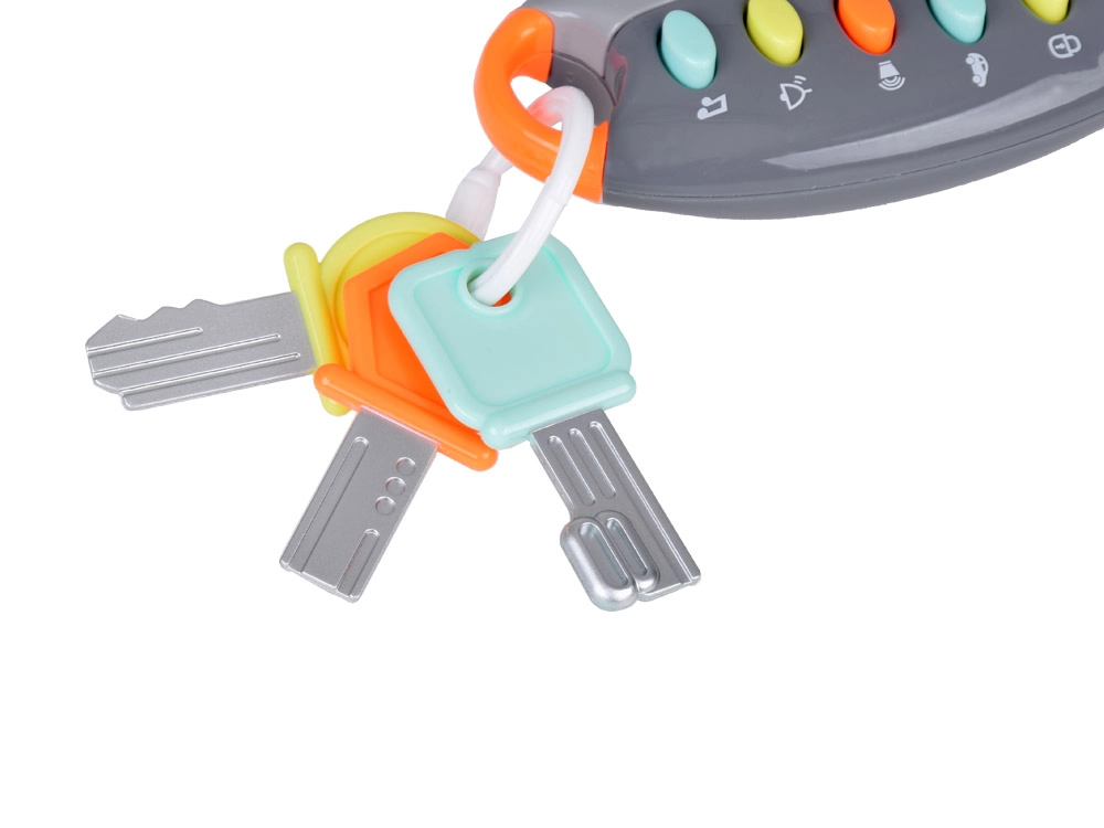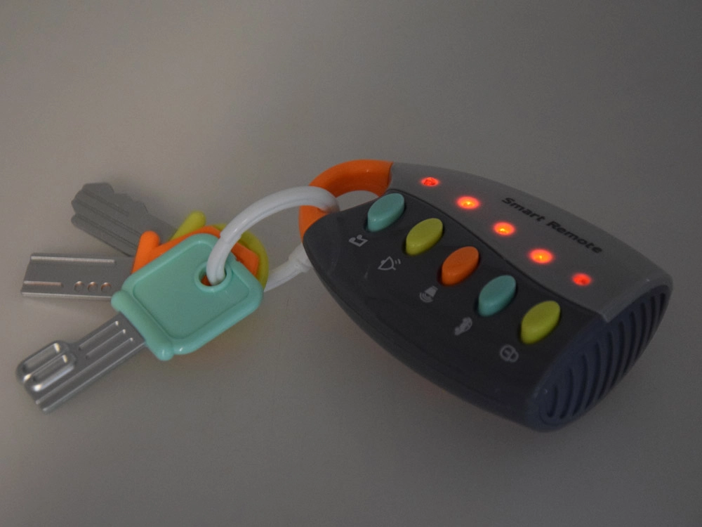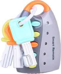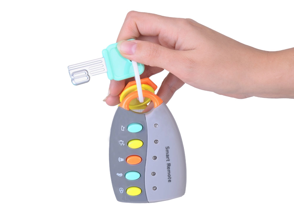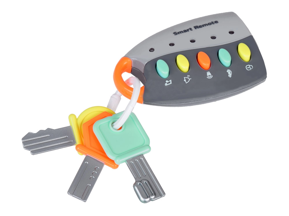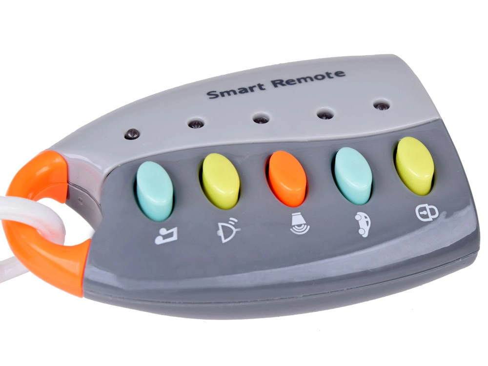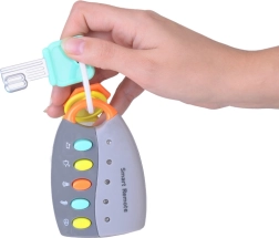 Τα παιδιά λατρεύουν να μιμούνται τους μεγάλους – και με αυτά τα διαδραστικά κλειδιά θα απολαύσουν πολλή ασφαλή και δημιουργική διασκέδαση. Το τηλεχειριστήριο με πολύχρωμα κουμπιά παίζει χαρούμενες μελωδίες και αυθεντικούς ήχους αυτοκινήτου, τους οποίους συμπληρώνουν τα αναβοσβήνοντα φωτάκια. Το παιχνίδι είναι ελαφρύ, ευχάριστο στο κράτημα και καθαρίζεται εύκολα.
