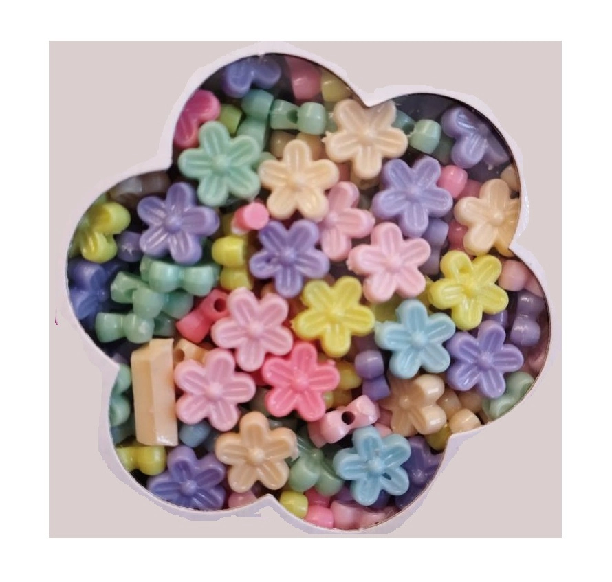 Αυτό το δημιουργικό σετ πολύχρωμων χαντρών σε σχήμα λουλουδιών προσφέρει όλα όσα χρειάζεστε για την κατασκευή πρωτότυπων κοσμημάτων. Στη συσκευασία θα βρείτε και 1 μέτρο κορδόνι για εύκολο περασμα. Οι χάντρες περνιούνται εύκολα και σας επιτρέπουν να δημιουργήσετε βραχιόλια και κολιέ για εσάς και για φίλους. Συνδυάζονται τέλεια με άλλα είδη της συλλογής (12 τύποι).