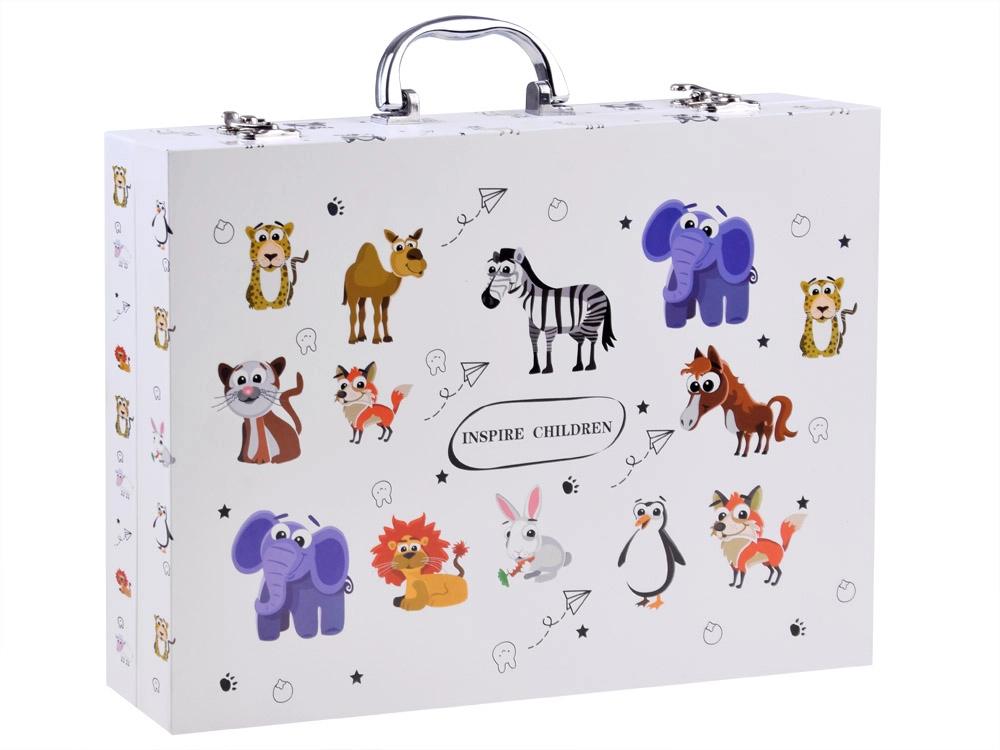 Αυτό το πλούσια εξοπλισμένο σετ για μικρούς καλλιτέχνες προσφέρει ό,τι χρειάζονται τα παιδιά για ζωγραφική και σκίτσο. Το συμπαγές βαλιτσάκι με διασκεδαστικά μοτίβα ζωάκια μεταφέρεται εύκολα χάρη στη στιβαρή λαβή, ώστε η δημιουργία να είναι πάντα μαζί σας – στο σπίτι, στην εκδρομή ή στο σχολείο.