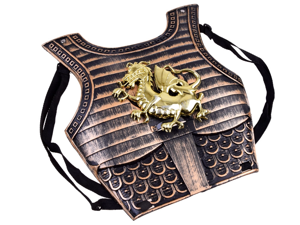 Αυτός ο πλήρης ιπποτικός εξοπλισμός είναι ιδανικός για περιπέτειες στο σπίτι, για καρναβάλι και παιδικά πάρτι. Η πανοπλία με τον έντονο χρυσό δράκο εφαρμόζει χάρη στους ρυθμιζόμενους ιμάντες, το τόξο με δύο ασφαλή βέλη με βεντούζα θα ενθουσιάσει τους μικρούς τοξότες και το ελαφρύ σπαθί ολοκληρώνει κάθε ηρωική αποστολή.
