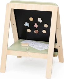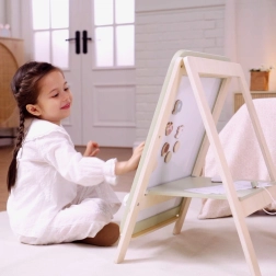 Ο ξύλινος πίνακας PolarB είναι ένα εξαιρετικό εργαλείο για μικρούς καλλιτέχνες, που υποστηρίζει το δημιουργικό παιχνίδι και την ανάπτυξη των δεξιοτήτων λεπτής κινητικότητας. Ο πίνακας έχει δύο πλευρές - μια κλασική μαύρη κιμωλίας και μια λευκή μαγνητική επιφάνεια. Χάρη στο ρυθμιζόμενο ύψος προσαρμόζεται στην ανάπτυξη του παιδιού, εξασφαλίζοντας άνετο παιχνίδι σε διάφορα στάδια εξέλιξης.
