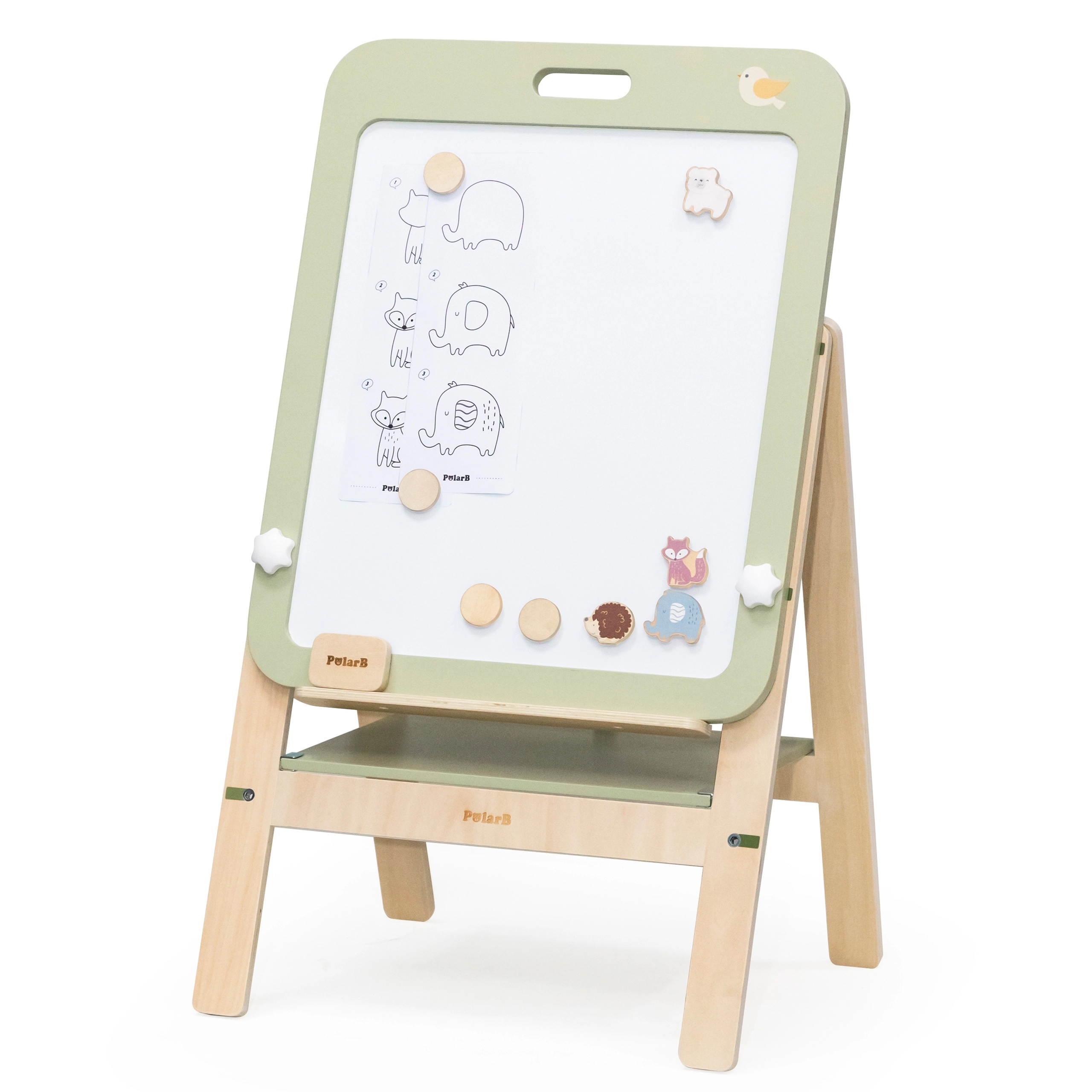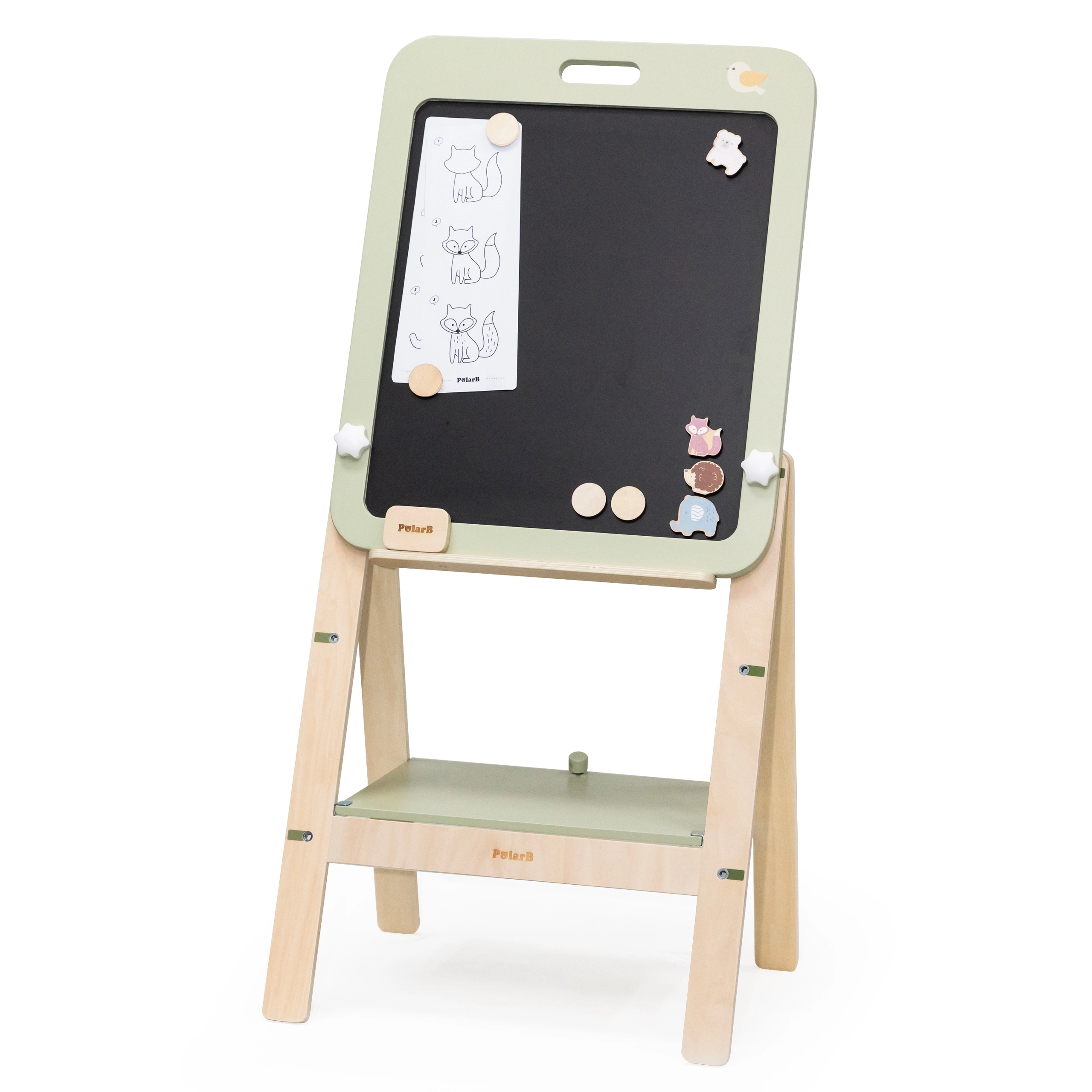 Ο ξύλινος αναπτυσσόμενος πίνακας PolarB προσφέρει μια διασκεδαστική και εκπαιδευτική εμπειρία για τα παιδιά. Ο πίνακας είναι διπλής όψης, με μαύρη επιφάνεια για κιμωλίες και λευκή μαγνητική επιφάνεια για στεγνό σβήσιμο. Χάρη στα τρία επίπεδα ρύθμισης ύψους είναι ιδανικός για παιδιά που αναπτύσσονται. Μετά το παιχνίδι, ο πίνακας μπορεί εύκολα να αφαιρεθεί και να χρησιμοποιηθεί ως διακόσμηση κρεμώντας τον στον τοίχο.