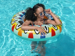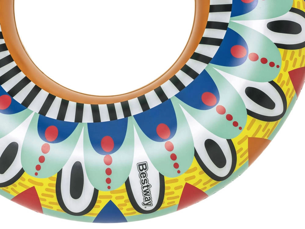 Το σωσίβιο κολύμβησης Fiesta φέρνει ξανά στυλ και χαρά στην πισίνα με τη ζωντανή γραφιστική του και τα έντονα χρώματα. Με διάμετρο 107 cm και δύο μαύρες χειρολαβές για εύκολο κράτημα, εξασφαλίζει ασφάλεια για παιδιά από 12 ετών και άνω καθώς και για ενήλικες. Η ενσωματωμένη βαλβίδα ασφαλείας επιτρέπει εύκολο φούσκωμα και άδειασμα, ώστε η αποθήκευση να είναι παιχνιδάκι.