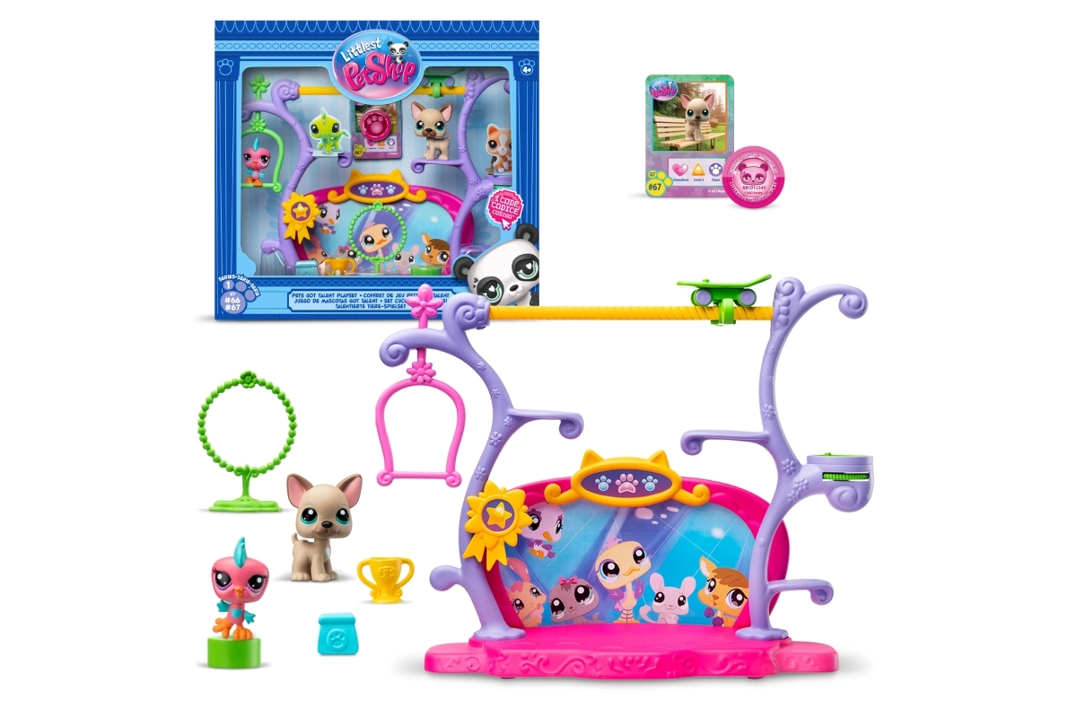 Καλωσορίζουμε όλους τους θαυμαστές των αγαπημένων ζωάκιων Littlest Pet Shop! Έρχεται η Γενιά 7 με πάνω από 65 νέους φίλους στη συλλογή. Αυτό το σετ παιχνιδιού περιλαμβάνει ένα γαλλικό μπουλντόγκ και ένα πουλάκι που είναι έτοιμα για σόου ταλέντων. Μπείτε στον εικονικό κόσμο του Littlest Pet Shop χάρη σε έναν ειδικό κωδικό που ξεκλειδώνει αποκλειστικές φιγούρες και εκπλήξεις.