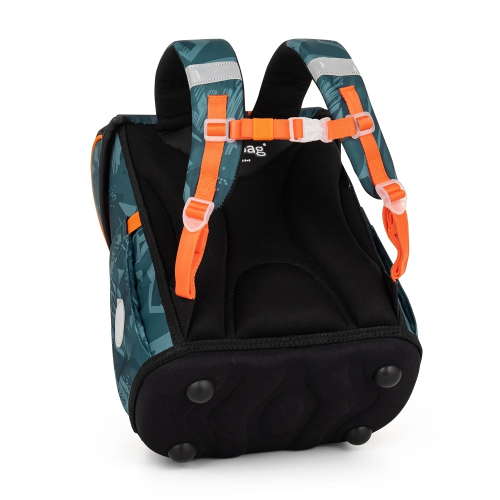 Ελαφριά και εργονομική σχολική τσάντα για την 1.–2. τάξη με μοτίβο αυτοκινήτου, προσφέρει ανατομικά διαμορφωμένη πλάτη, σταθερό πάτο, ασφαλή μεταλλική πόρπη με ανακλαστήρα και φαρδιές μαλακές τιράντες για άνετη και ασφαλή μεταφορά. Χωρητικότητα 27 l, αντοχή φορτίου 8 kg, βάρος μόλις 1,1 kg.