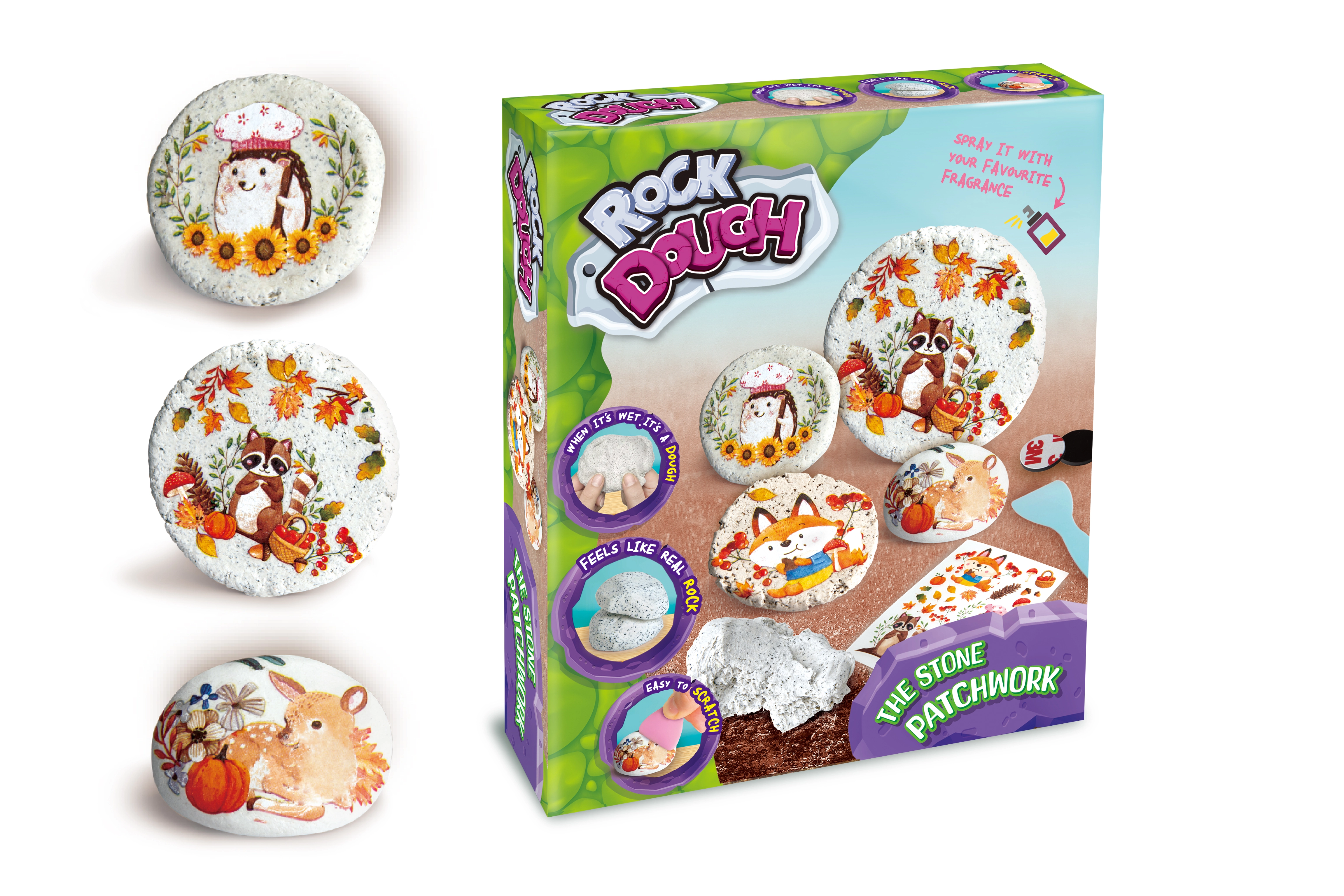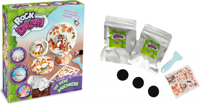 - 2× 60 g πέτρινης μάζας, 3× μαγνητικό βαρίδι, αυτοκόλλητα, σπάτουλα, εικονογραφημένες οδηγίες