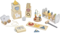 Ασφαλής κατασκευή με λείες άκρες, ανθεκτικά ξύλινα μέρη και διαισθητικές δραστηριότητες κάνουν το σετ εξαιρετική επιλογή για καθημερινό παιχνίδι ή ως δώρο. Το πρακτικό κουτί-συσκευασία με λαβή διευκολύνει τη μεταφορά και την αποθήκευση.