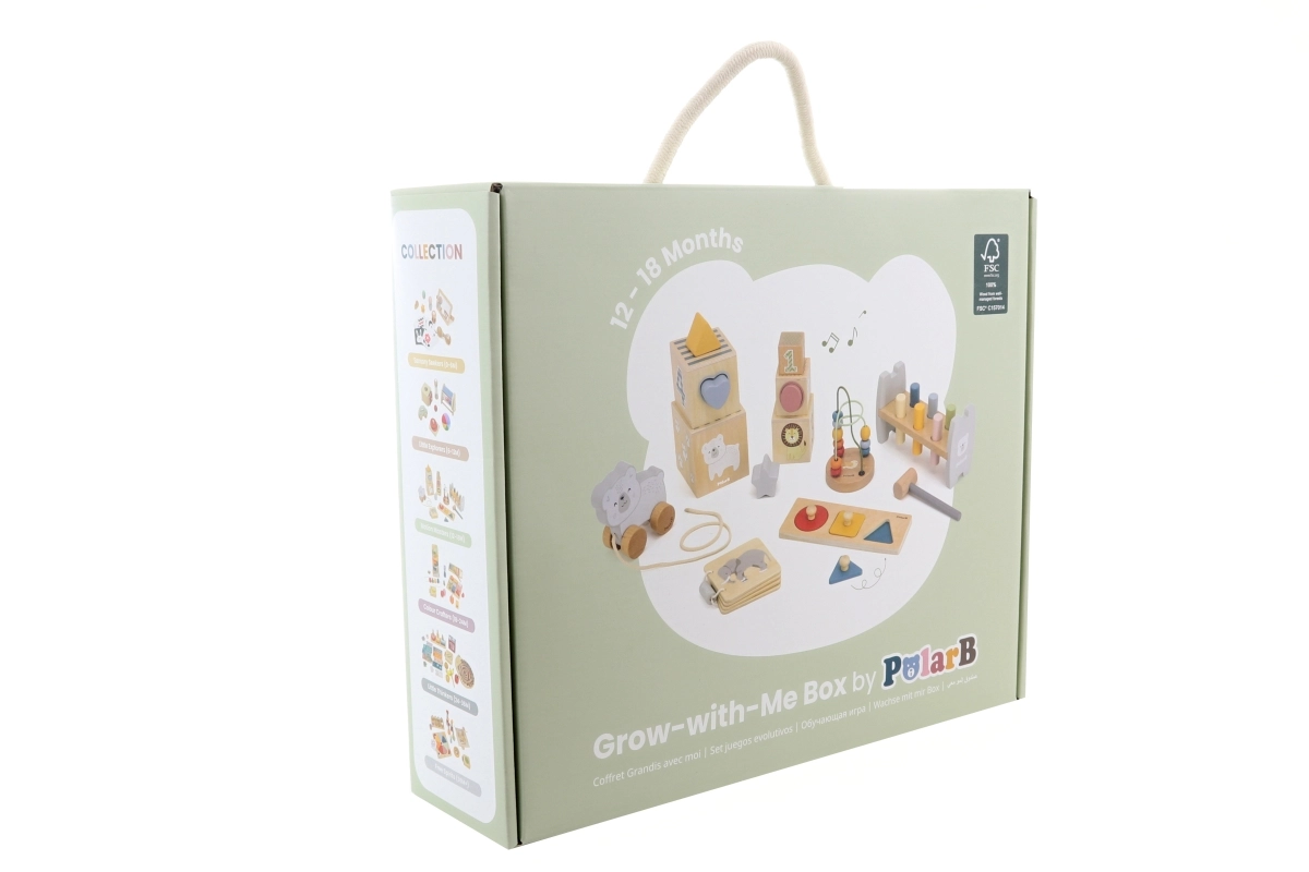 Αυτό το προσεγμένο ξύλινο σετ παιχνιδιών PolarB για ηλικίες 12–18 μηνών αναπτύσσει βασικές δεξιότητες με παιγνιώδη τρόπο. Τα παιδιά εξασκούν το πιάσιμο, την ακρίβεια κινήσεων και τη λογική σκέψη, ενώ μαθαίνουν να ξεχωρίζουν χρώματα, σχήματα και μεγέθη. Οι απαλές παστέλ αποχρώσεις και τα χαριτωμένα ζωάκια τα παρακινούν φυσικά στην εξερεύνηση.