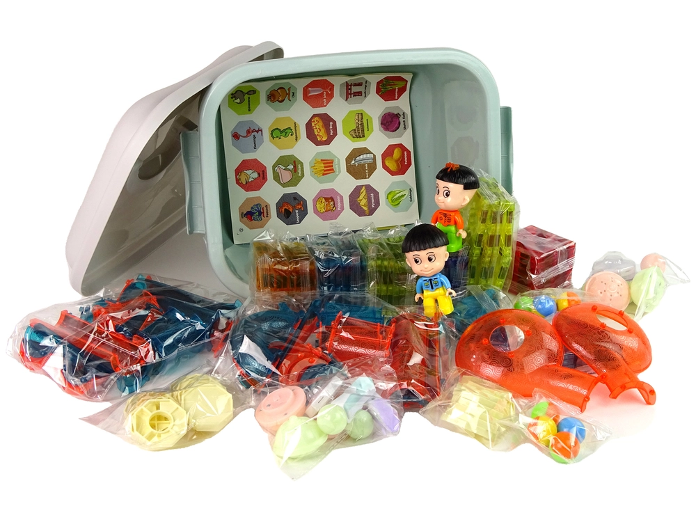 - 150 κομμάτια συμπεριλαμβανομένων φωτιζόμενων μπιλιών, μαγνητικών τουβλακίων, φιγούρων (2 τεμ.) και αυτοκόλλητων