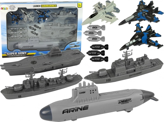Εισέλθετε στον κόσμο των ναυτικών αποστολών με ένα πλούσιο σετ που αναπτύσσει τη φαντασία και την τακτική σκέψη. Ρεαλιστικά μοντέλα πλοίων και αεροσκαφών σε στρατιωτικά χρώματα, ανθεκτικό και πιστοποιημένο πλαστικό και εύκολος χειρισμός εξασφαλίζουν ατελείωτες ώρες δημιουργικού παιχνιδιού στο σπίτι και στις εκδρομές.