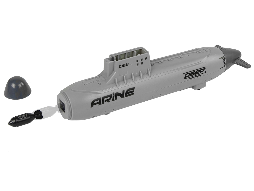 Πρωταγωνιστεί το υποβρύχιο με μηχανικό εκτοξευτή και ροδάκια για ομαλή κίνηση στο πάτωμα. Τοποθετείτε τον πύραυλο από πάνω, τραβάτε το πίσω μέρος και εκτοξεύετε – οι ασφαλείς πλαστικές «βόμβες» προσθέτουν έναν δυναμικό τόνο στο παιχνίδι. Τον στόλο συμπληρώνουν πολεμικό πλοίο, εφοδιαστικό πλοίο και αεροπλανοφόρο, ενώ τα τρία μαχητικά αεροσκάφη προσφέρουν αεροπορική υποστήριξη σε κάθε αποστολή.