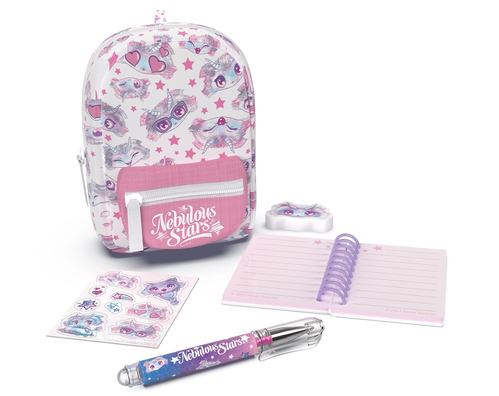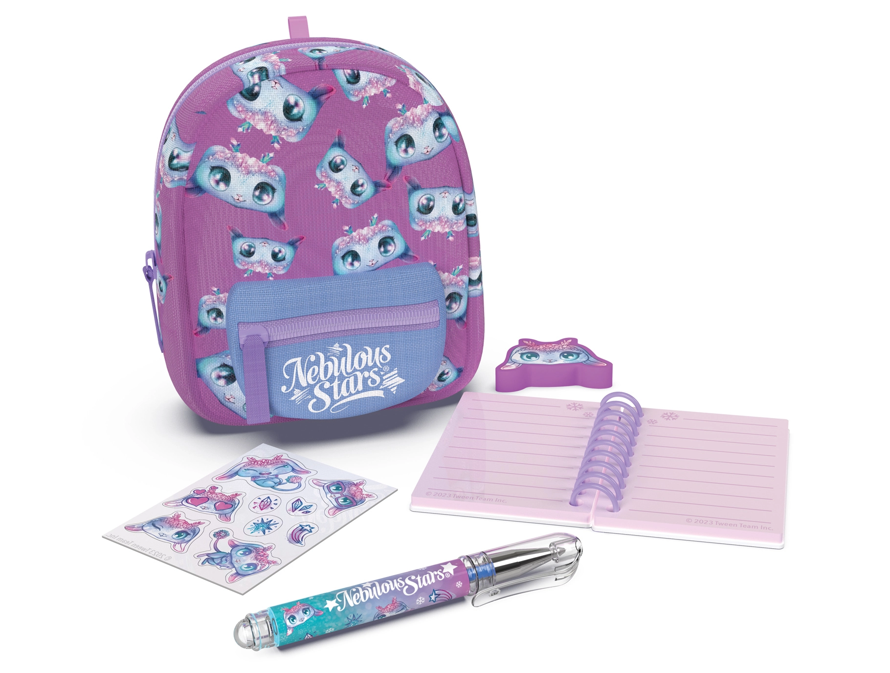 Στιλάτο μίνι σακίδιο NEBULOUS STARS με σετ χαρτοπωλείου, ιδανικό για μικρούς λάτρεις της δημιουργίας και για το ταξίδι. Στις συμπαγείς διαστάσεις 9 × 6 × 11 cm κρύβει ό,τι χρειάζεστε: τετράδιο με γραμμές, στυλό, γόμα, αυτοκόλλητα και ένα χαριτωμένο μπρελόκ. Διατίθεται σε 3 χρωματικές παραλλαγές – μπλε, λευκό και μωβ.