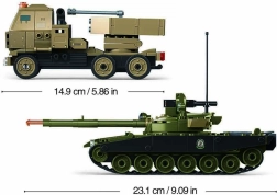 Το μήκος του άρματος είναι 23,1 cm και του οχήματος 14,9 cm. Το σετ είναι σχεδιασμένο διαισθητικά και η απλή συναρμολόγηση ενισχύει την αυτονομία των παιδιών. Οι διαστάσεις της συσκευασίας είναι 47,5x33x6,7 cm, καθιστώντας το μια ιδανική επιλογή για δώρο με εντυπωσιακό σχεδιασμό.