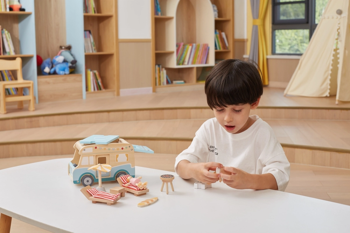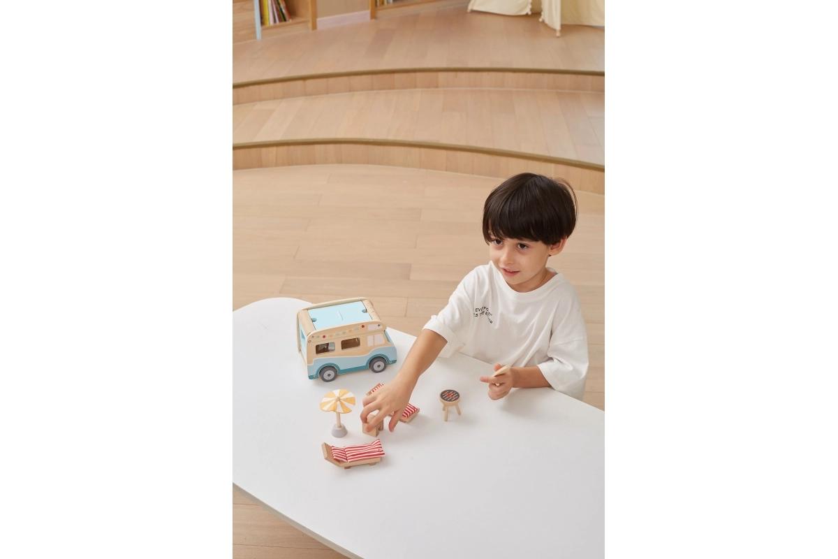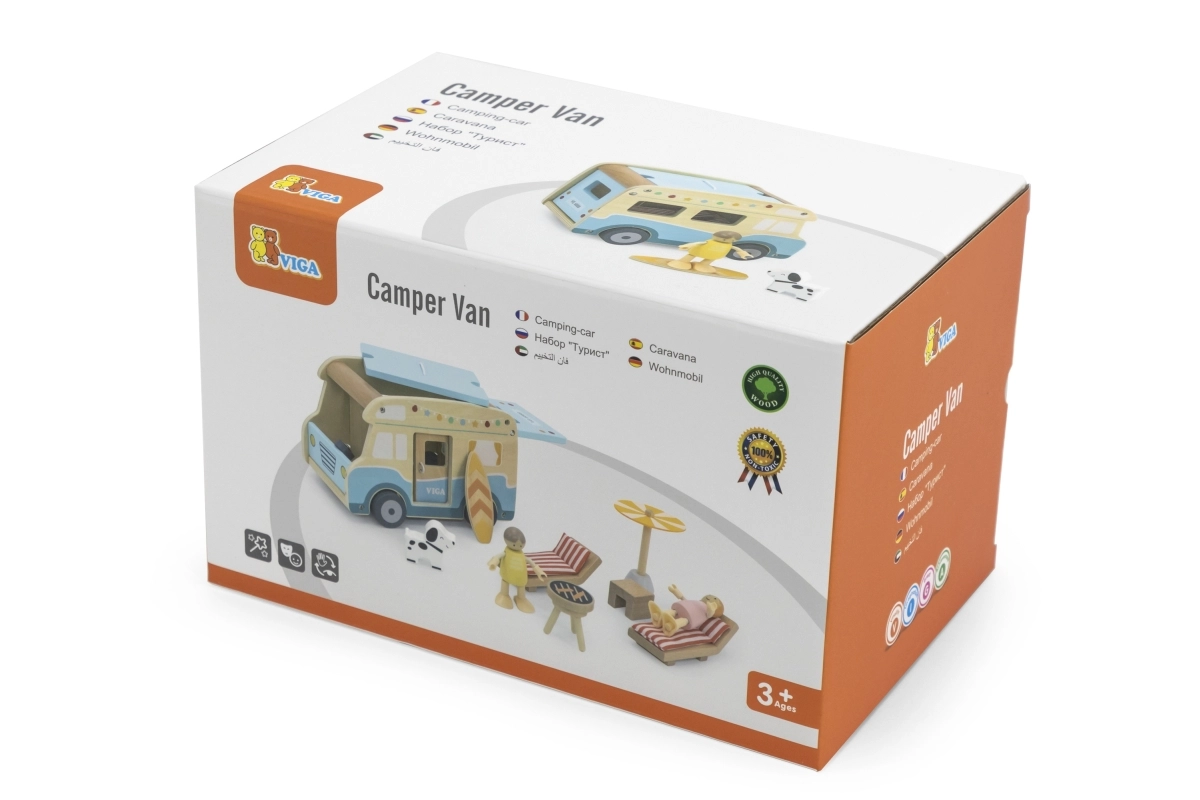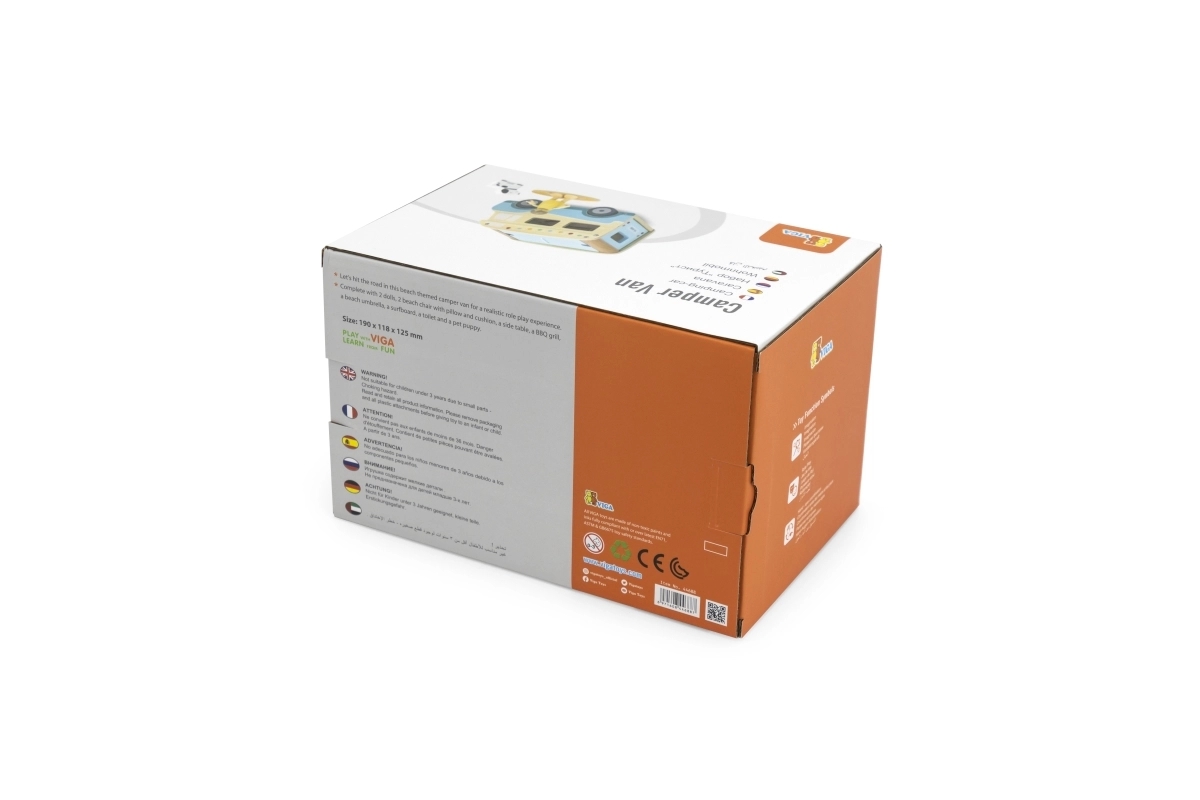 Το παραλιακό κάμπινγκ βαν της Viga είναι ιδανική διασκέδαση για παιδιά από 3 ετών. Με αυτό το σετ τα παιδιά μπορούν να ζουν ατελείωτες ιστορίες και να καλλιεργούν τη φαντασία τους. Χαρακτηριστικά:
