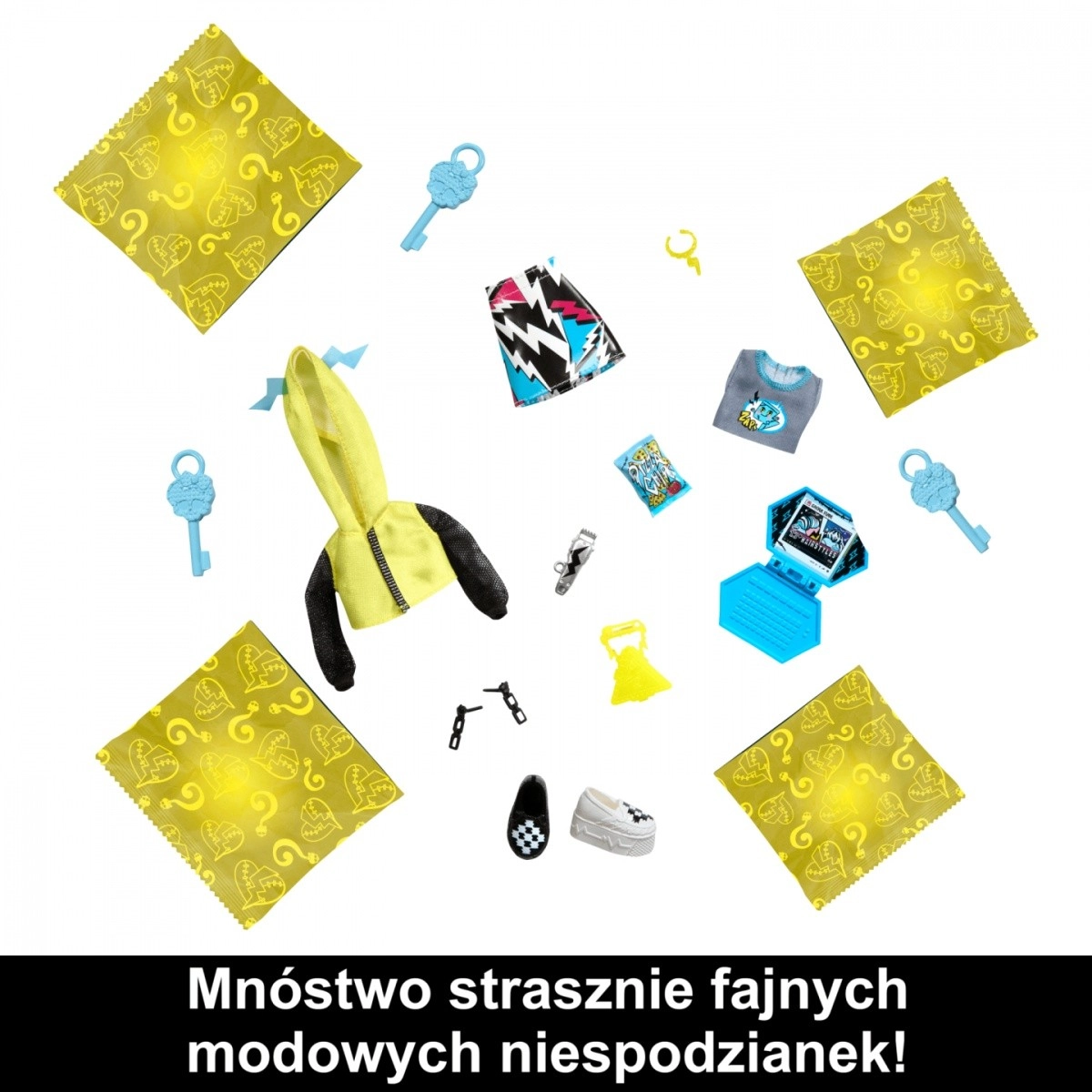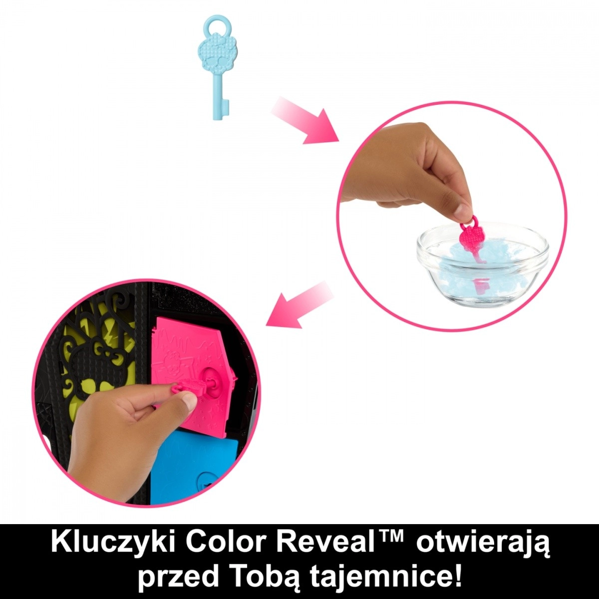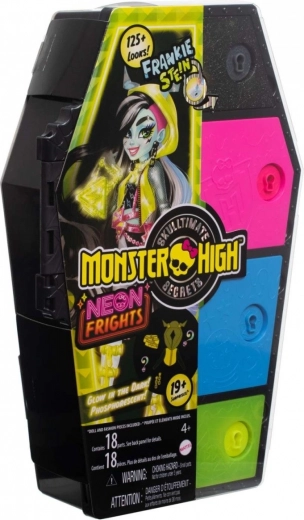 Άνοιξε το ηλεκτρισμένο ντουλαπάκι της Frankie Stein και μπες στον κόσμο της Monster High σε νεον στυλ. Σε περιμένουν τέσσερα κλειδιά με εφέ Color Reveal, κρυφές θήκες γεμάτες αξεσουάρ και ένα μιξ αξεσουάρ που λάμπουν στο σκοτάδι. Ιδανικό για δημιουργικό παιχνίδι, συλλογή και εντυπωσιακή έκθεση.