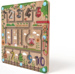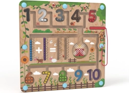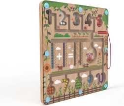Με το μαγνητικό στυλό τα παιδιά εξασκούν τη λαβή, την υπομονή και τη συγκέντρωση, καθώς οδηγούν τις μπίλιες στα σωστά σημεία, συμπληρώνουν παραδείγματα και ταξινομούν τους αριθμούς. Το παιχνίδι παράλληλα ενισχύει το λεξιλόγιο κατά την ονομασία χρωμάτων, ζώων και αντικειμένων.