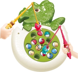 Αυτό το χαριτωμένο παιχνίδι ψαρέματος σε πράσινο σχεδιασμό δεινοσαυράκι προσφέρει δυναμική δράση: με την ενεργοποίηση, η λιμνούλα περιστρέφεται και τα πολύχρωμα ψαράκια εμφανίζονται περιοδικά. Ο στόχος των παικτών είναι να πιάσουν το ψαράκι όσο το δυνατόν γρηγορότερα – υπέροχη διασκέδαση για έναν ή περισσότερους παίκτες.