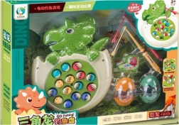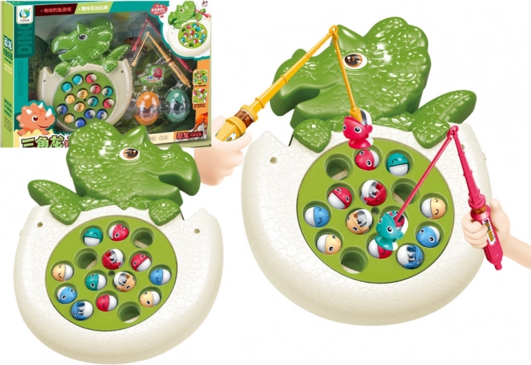 Διασκεδαστικό παιδικό παιχνίδι σε σχήμα δεινόσαυρου, όπου τα ψαράκια στη «λιμνούλα» περιστρέφονται και ανεβαίνουν στην επιφάνεια. Τα παιδιά τα πιάνουν με απόχη ή καλάμι και εξασκούν την αντίληψη, τη λεπτή κινητικότητα και τον συντονισμό. Το παιχνίδι προσφέρει φωτεινά εφέ και ήχους για ακόμη μεγαλύτερη διασκέδαση.