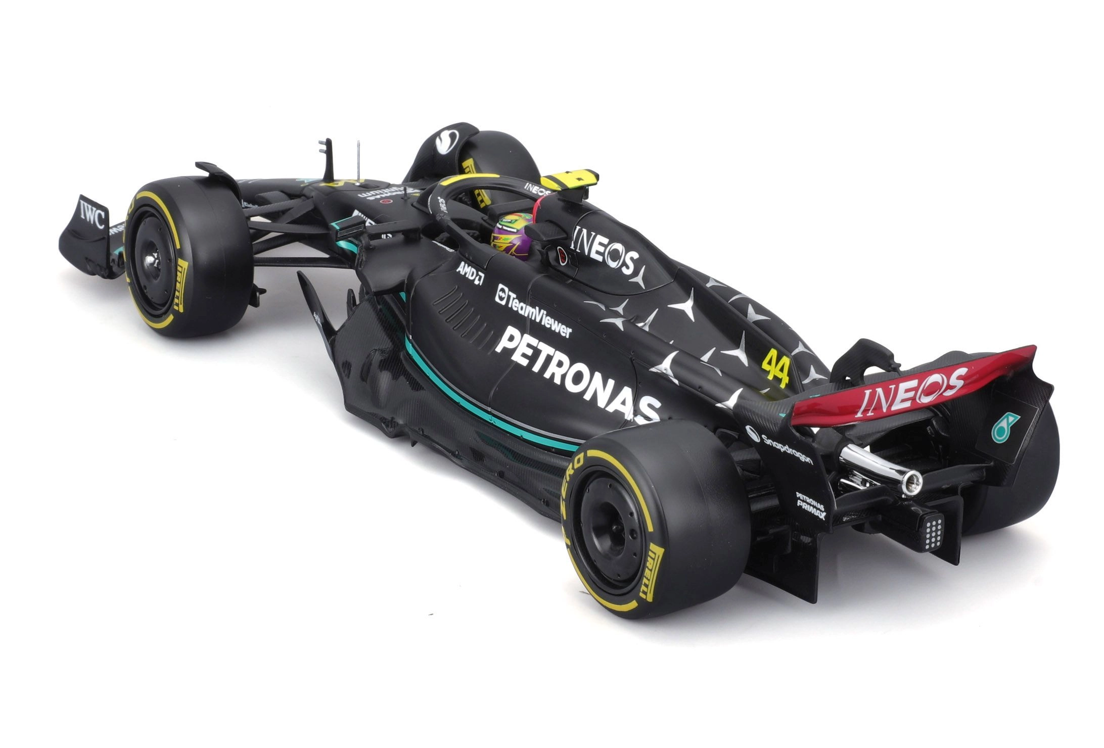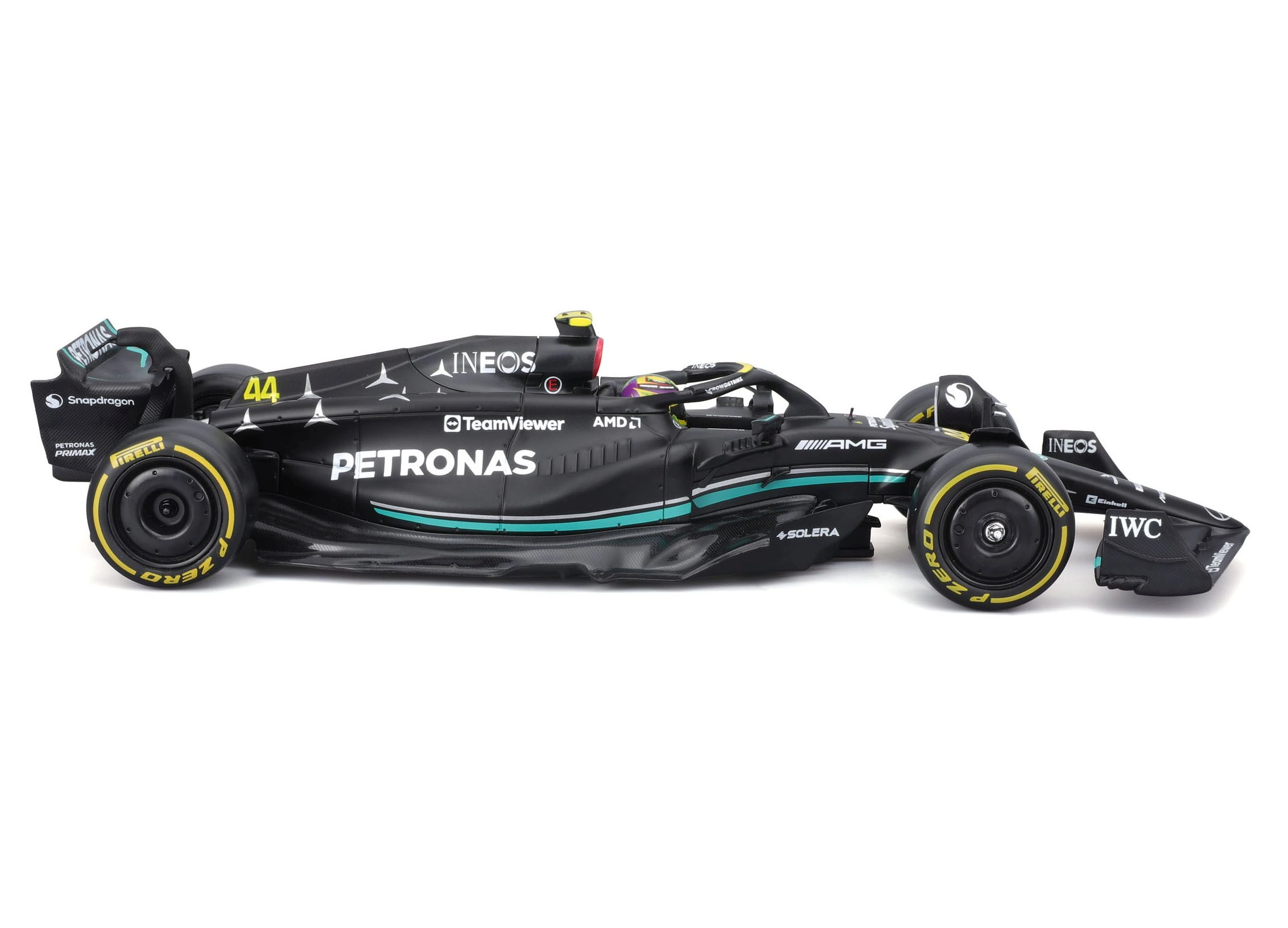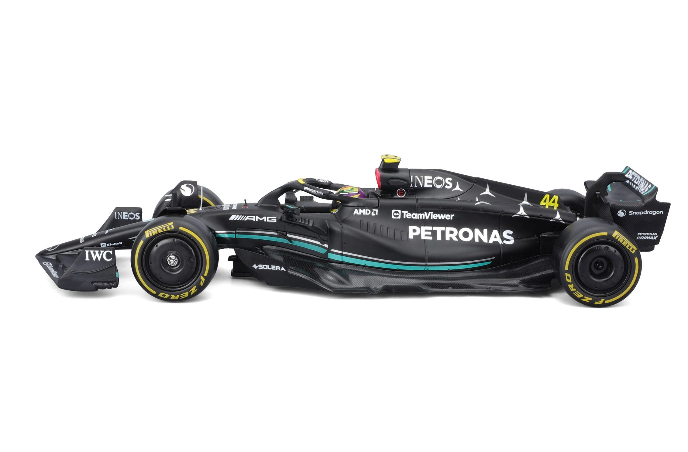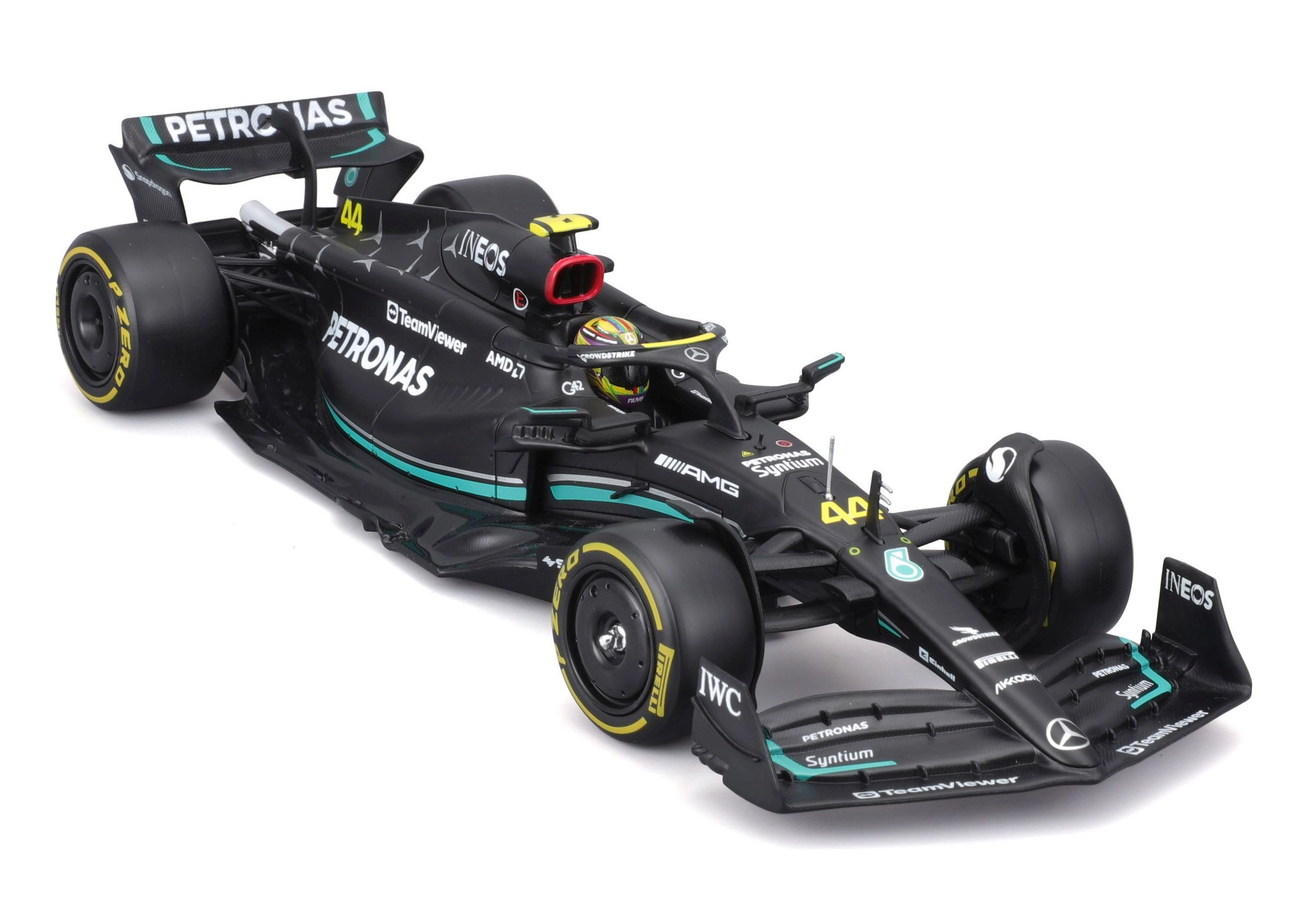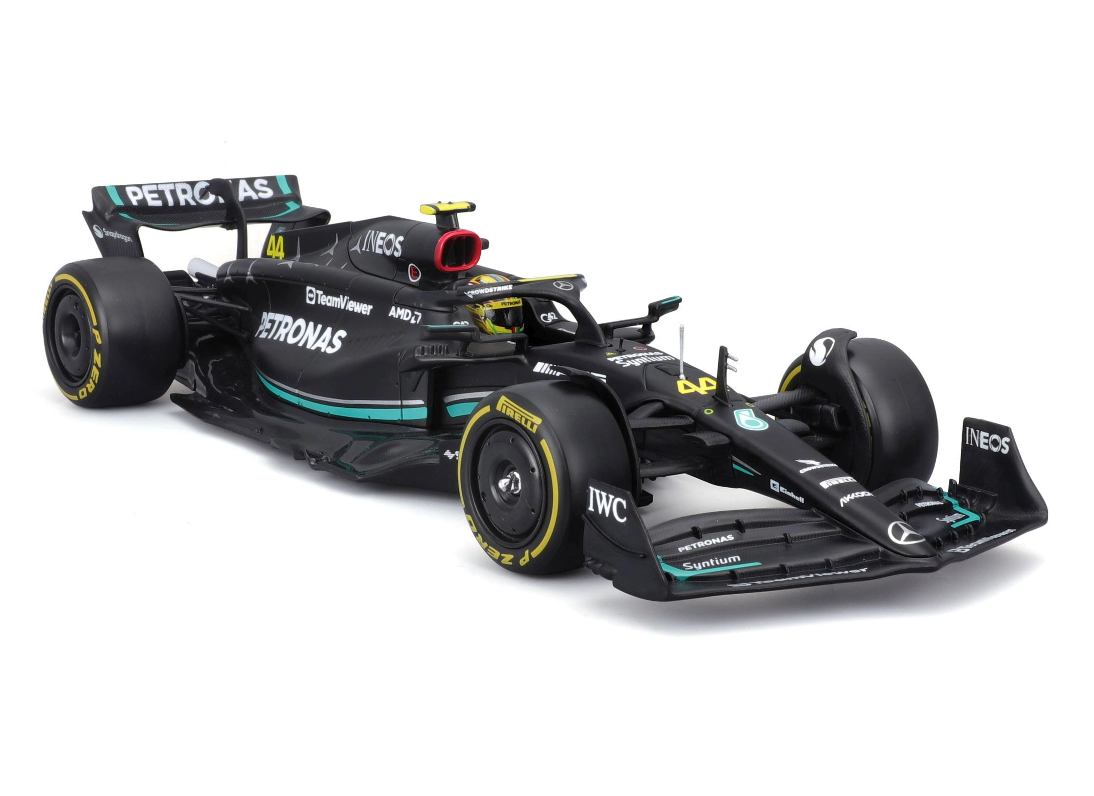 Απολαύστε το εμβληματικό μονοθέσιο W14 E Performance (2023) στην έκδοση της ομάδας MERCEDES‑AMG PETRONAS με τον αριθμό συμμετοχής 44. Το μοντέλο σε κλίμακα 1:24 αποτυπώνει πιστά τις λεπτομέρειες του αμαξώματος, τα φτερά, το halo και τον χαρακτηριστικό χρωματισμό. Ιδανικό για βιτρίνες, γραφείο ή ως δώρο σε φίλους του μηχανοκίνητου αθλητισμού.