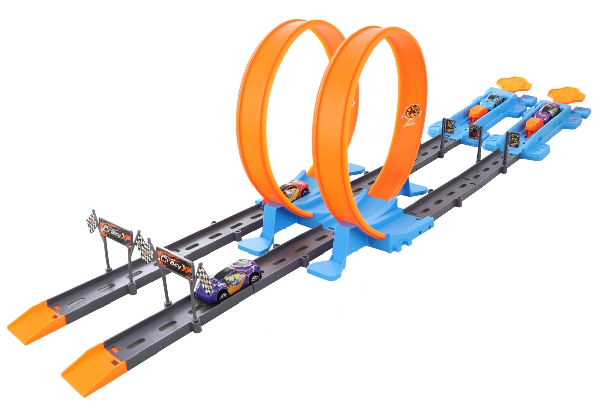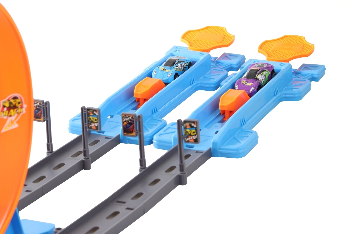 Αυτή η παιδική αγωνιστική πίστα προσφέρει ατελείωτη διασκέδαση και ανταγωνισμό. Η διπλή διαδρομή με παράλληλες λωρίδες επιτρέπει ταυτόχρονους, απευθείας αγώνες δύο αυτοκινήτων, ενώ τα ρυθμιζόμενα 4 επίπεδα εκτόξευσης εξασφαλίζουν πάντα τη σωστή δόση ταχύτητας. Χάρη στις έξυπνα σχεδιασμένες λούπες και τις σταθερές βάσεις, τα αυτοκινητάκια κινούνται με ασφάλεια στην πίστα δημιουργώντας εντυπωσιακά περάσματα.