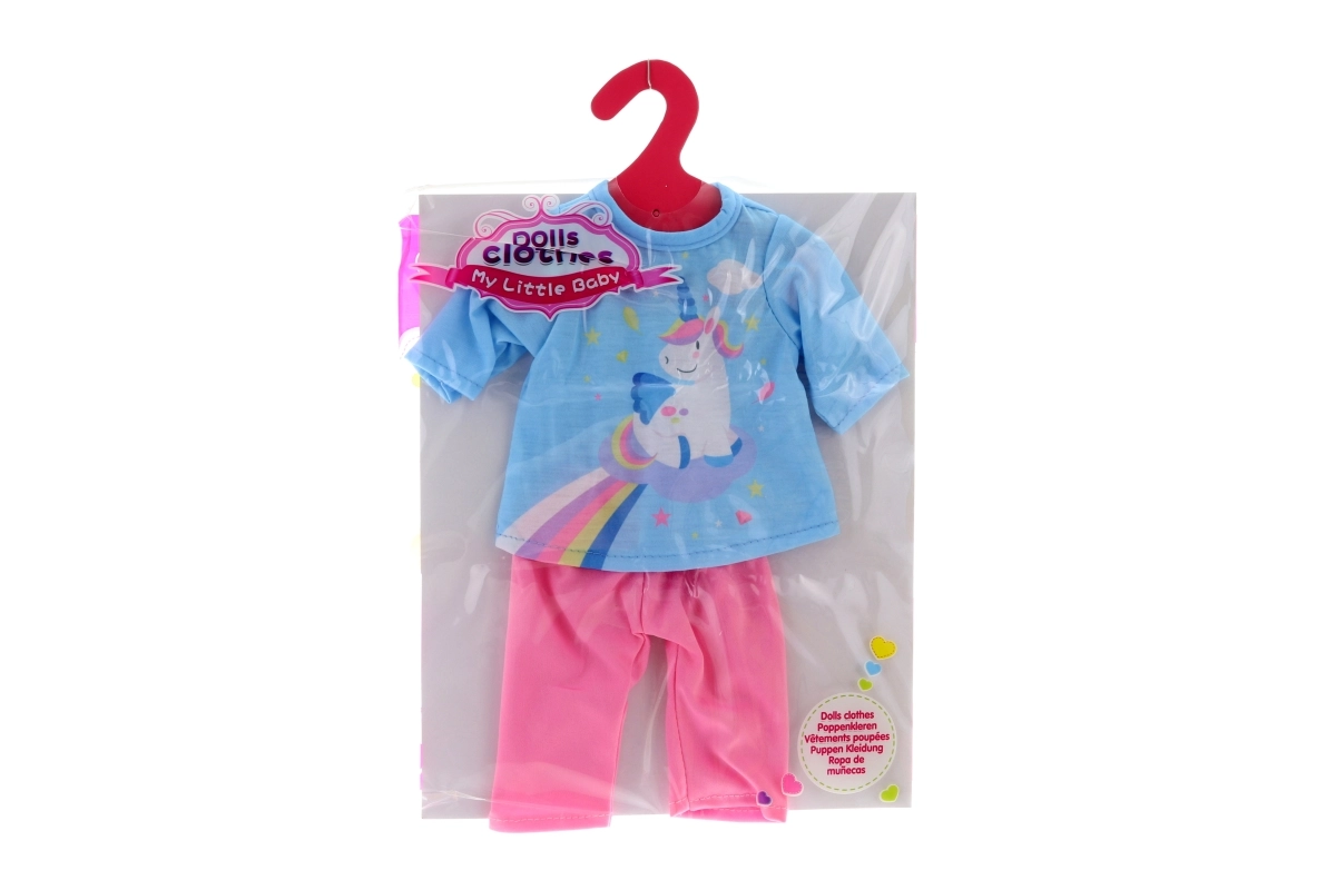 Χαρίστε στην κούκλα σας νέο στιλ με αυτό το γλυκό σετ, σχεδιασμένο για κούκλες μεγέθους 35–45 εκ. Το μπλουζάκι με μονόκερο και το άνετο παντελονάκι είναι υπέροχη επιλογή για καθημερινό παιχνίδι και επιδείξεις μόδας για κούκλες. Χάρη στο απλό κούμπωμα, τα ρούχα φοριούνται και βγαίνουν εύκολα.