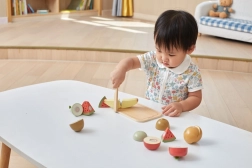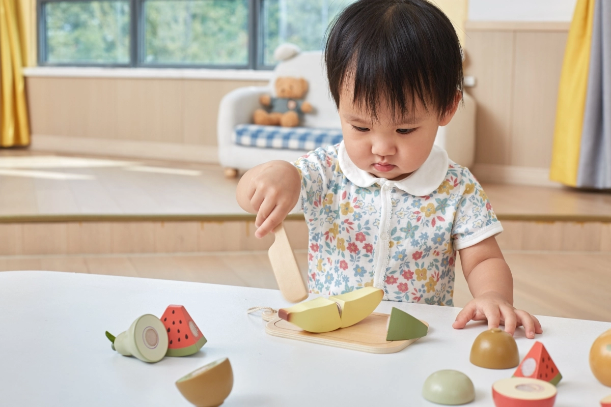 Με αυτό το σετ ξύλινων φρούτων, τα παιδιά μπορούν να απολαύσουν ώρες διασκέδασης και ταυτόχρονα να μαθαίνουν. Με το ξύλινο μαχαίρι, τα παιδιά μπορούν με ασφάλεια να κόβουν και να συνδυάζουν φρούτα σύμφωνα με τη φαντασία τους.