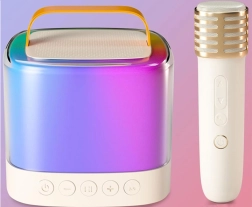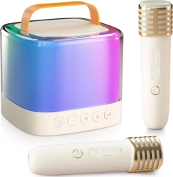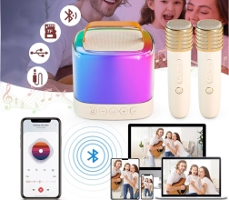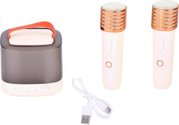Απολαύστε διασκέδαση οπουδήποτε με το φορητό ασύρματο μίνι ηχείο με δύο μικρόφωνα. Αυτό το εξαιρετικό σετ επιτρέπει να τραγουδάτε σε ζευγάρι ή σόλο χάρη στα δύο μικρόφωνα. Με τις συμπαγείς διαστάσεις του το παίρνετε εύκολα στην παιδική χαρά, στην εκδρομή ή στους φίλους σας και οργανώνετε ένα φανταστικό πάρτι. Η δυνατότητα σύνδεσης μέσω Bluetooth σάς επιτρέπει να κάνετε καραόκε απευθείας από το τηλέφωνό σας.