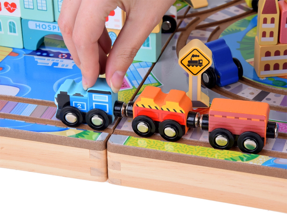 - Ευρεία διαδρομή: Η περιήγηση γύρω από την πόλη επιτρέπει στα παιδιά να σχεδιάζουν σιδηροδρομικές διαδρομές και να δημιουργούν τις δικές τους ιστορίες.