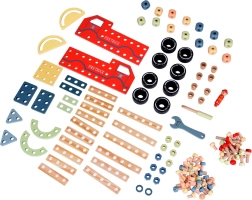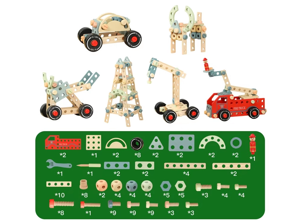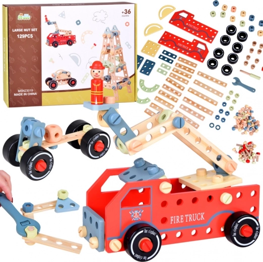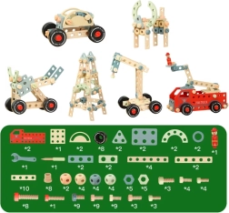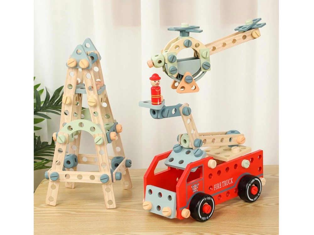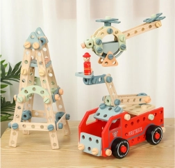 Βυθιστείτε στον κόσμο της δημιουργίας με το ξύλινο σετ κατασκευών μας, που υποστηρίζει την ανάπτυξη βασικών δεξιοτήτων στα παιδιά. Αυτό το εκπαιδευτικό σετ επιτρέπει τη δημιουργία ποικίλων μοντέλων, όπως πυροσβεστικά οχήματα, αεροπλάνα και άλλα δημιουργικά σχήματα.