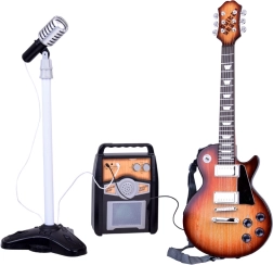 - Ηλεκτρική κιθάρα (καφέ), μικρόφωνο, ρυθμιζόμενη βάση, ενισχυτής με φώτα, ιμάντας, καλώδιο jack