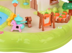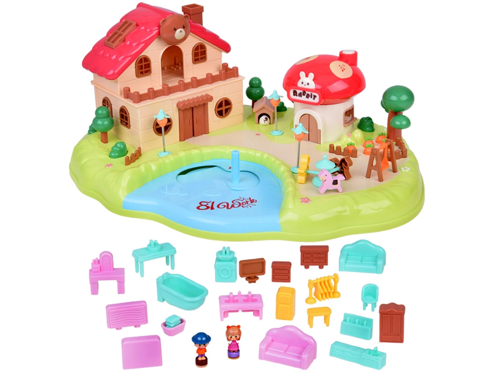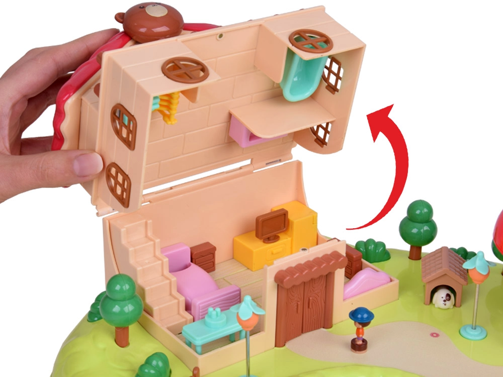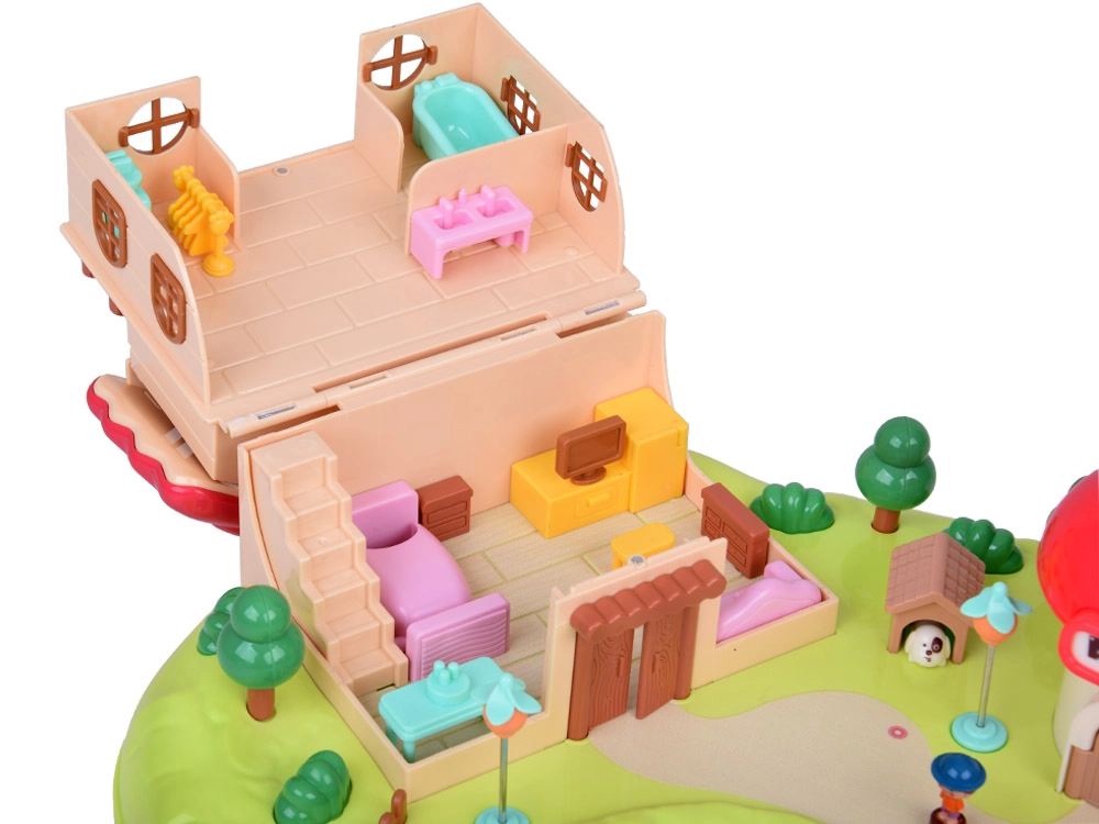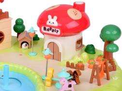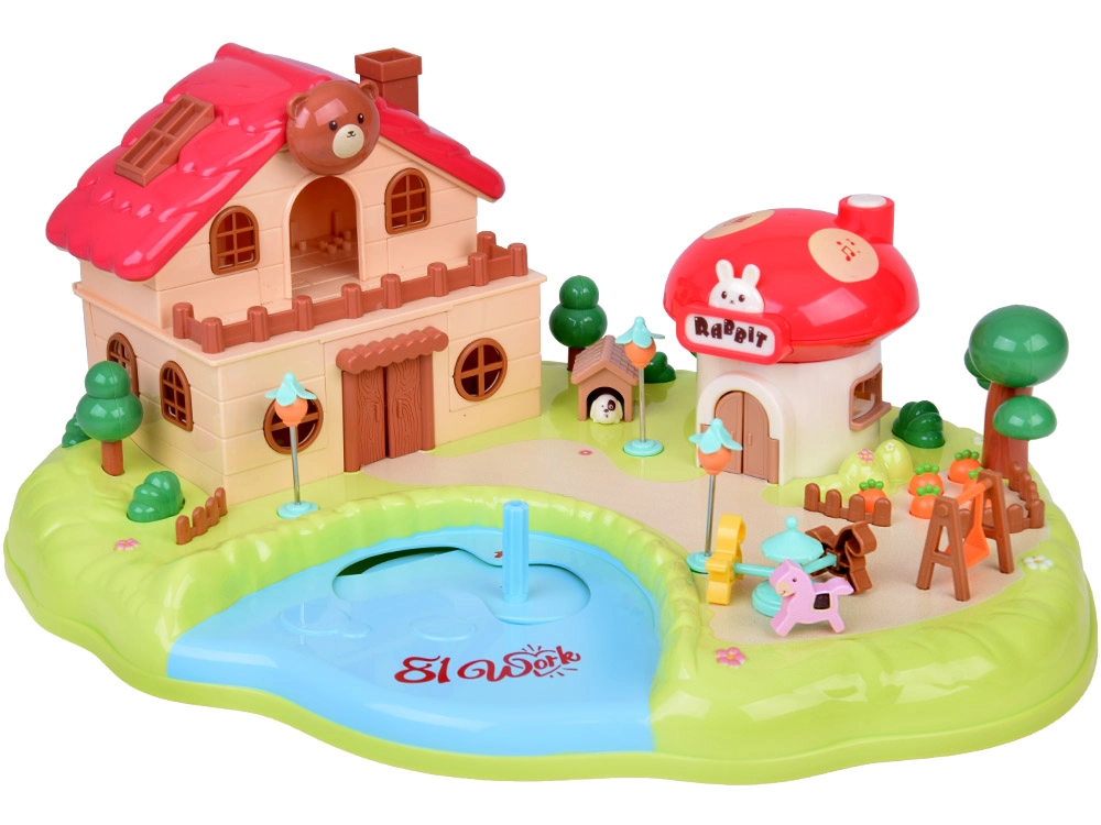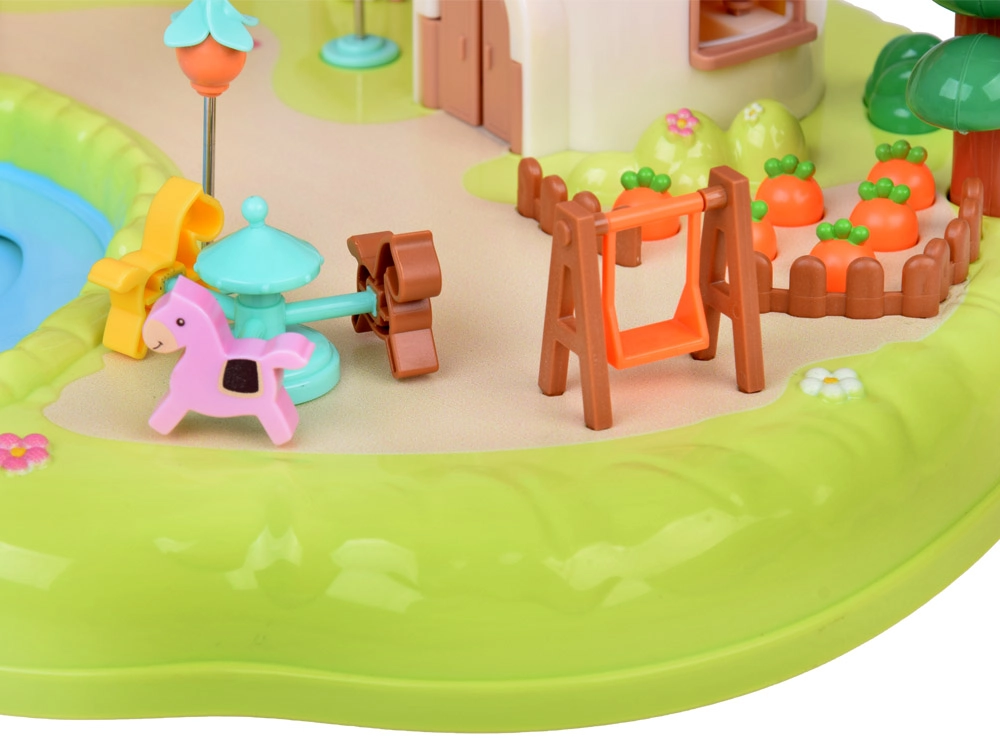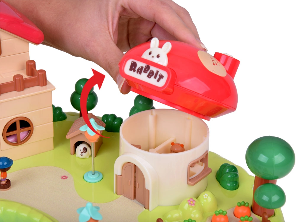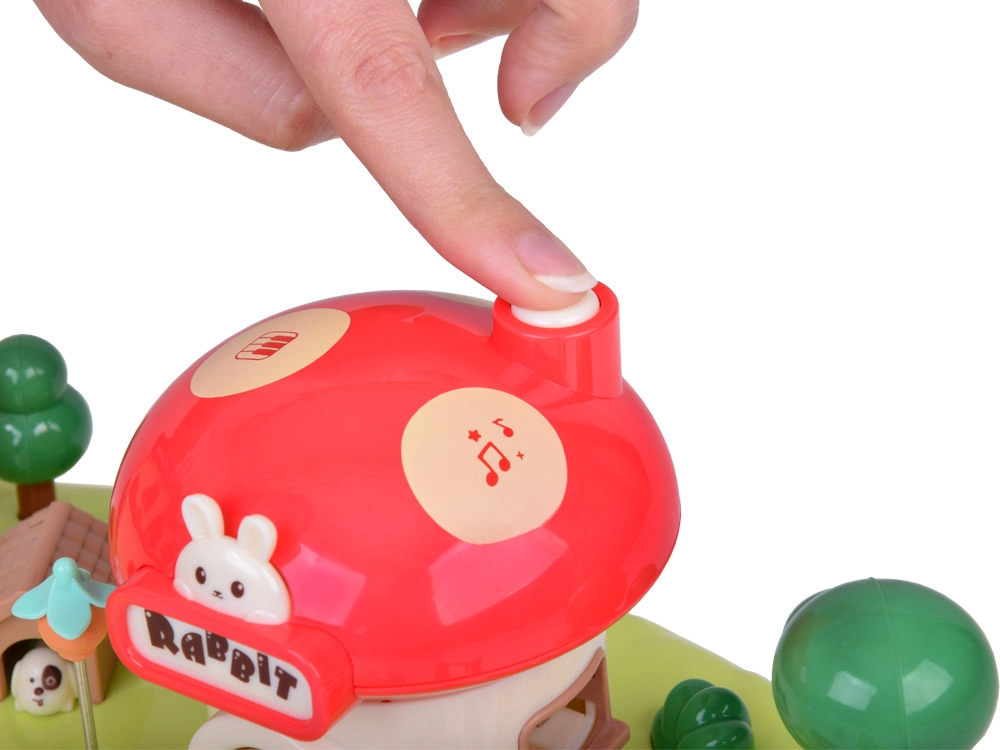 Αυτό το διαδραστικό μαγνητικό σπιτάκι δημιουργεί ένα πολύχρωμο σκηνικό παιχνιδιού με κήπο, λιμνούλα και μανιταρόσχημο μαγαζάκι. Τα παιδιά, με τη βοήθεια του ραβδιού ελέγχου, μετακινούν τις φιγούρες πάνω στη μπλε λιμνούλα, οι οποίες χάρη στη μαγνητική επαγωγή κινούνται ομαλά σε όλη τη σκηνή – από το παρτέρι με τα καρότα μέχρι την παιδική χαρά και την επίσκεψη στο κατοικίδιο. Το μανιταρόσχημο σπιτάκι διαθέτει λειτουργικά κουμπιά για φωτεινά και ηχητικά εφέ και κομψή επιγραφή «Rabbit» που ανάβει ρυθμικά.