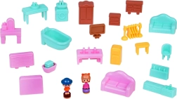 Το πολυεπίπεδο εσωτερικό είναι πλούσια εξοπλισμένο: στο ισόγειο θα βρείτε κρεβατοκάμαρα με άνετο κρεβάτι και ντουλάπα που ανοίγει, καθώς και καναπέ, τηλεόραση και κομό. Στον επάνω όροφο υπάρχει μπάνιο με μπανιέρα, νιπτήρα και πλυντήριο. Το επόμενο επίπεδο προσφέρει κουζίνα με ψυγείο και δωμάτιο με τουαλέτα/μπουντουάρ. Στον κήπο σας περιμένουν καρουζέλ και κούνια για ακόμη περισσότερη διασκέδαση.