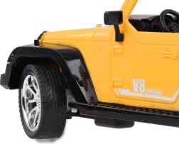 Ανοιχτό αμάξωμα σε στυλ jeep, χρωμιωμένες ζάντες και λεπτομερές εσωτερικό κάνουν το μοντέλο ελκυστικό εκτός δρόμου όχημα για παιδιά και λάτρεις.