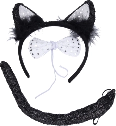 - Στεφάνι με αυτιά γάτας, παπιγιόν, ουρά