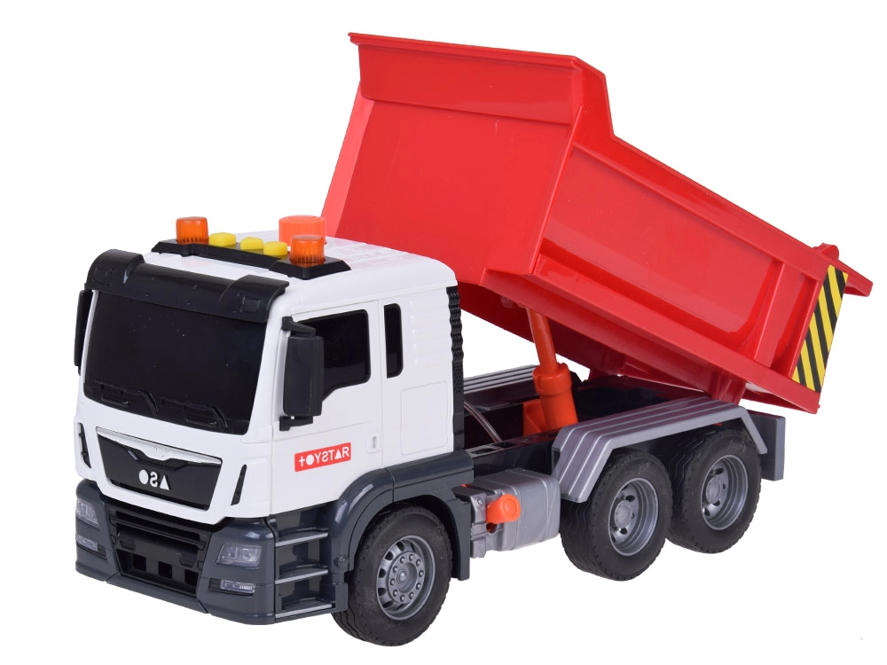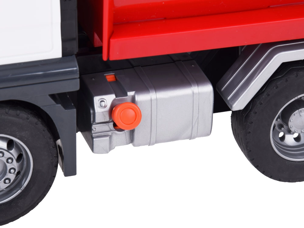 Αυτό το κατασκευαστικό φορτηγό είναι το ιδανικό παιχνίδι για την ανάπτυξη της δημιουργικότητας και της φαντασίας των παιδιών. Η ρεαλιστική εμφάνιση του και οι λεπτομέρειες, όπως οι ήχοι κινητήρα, η κόρνα και τα αναβοσβήνοντα φώτα, κάνουν το παιχνίδι ακόμα πιο διασκεδαστικό. Η κινούμενη ανατρεπόμενη καρότσα επιτρέπει στα παιδιά να προσομοιώνουν πραγματικά σενάρια κατασκευών.
