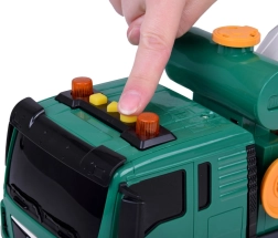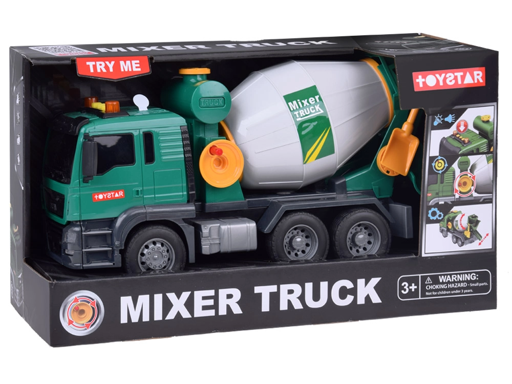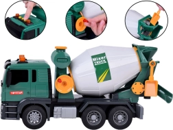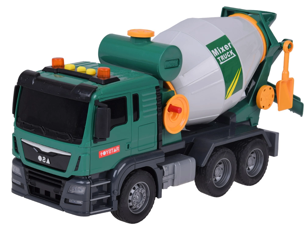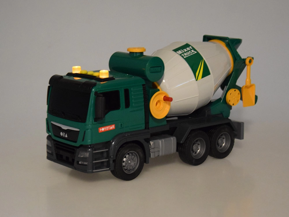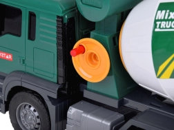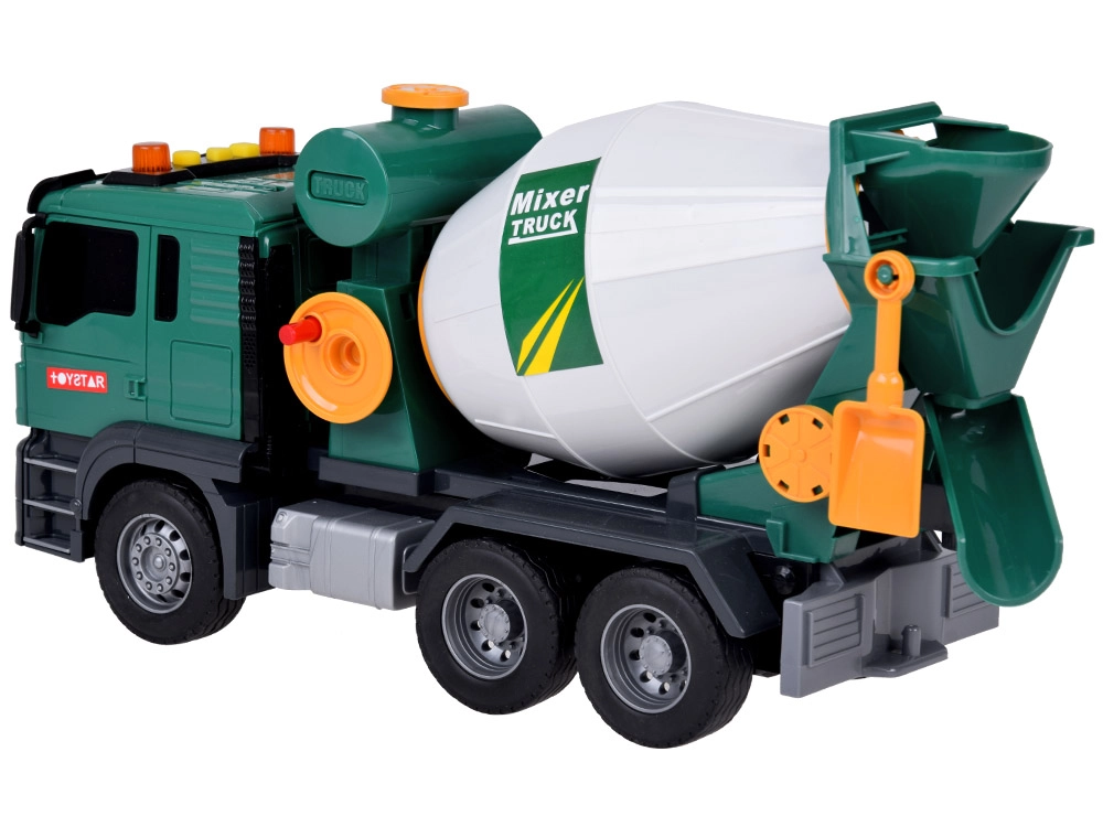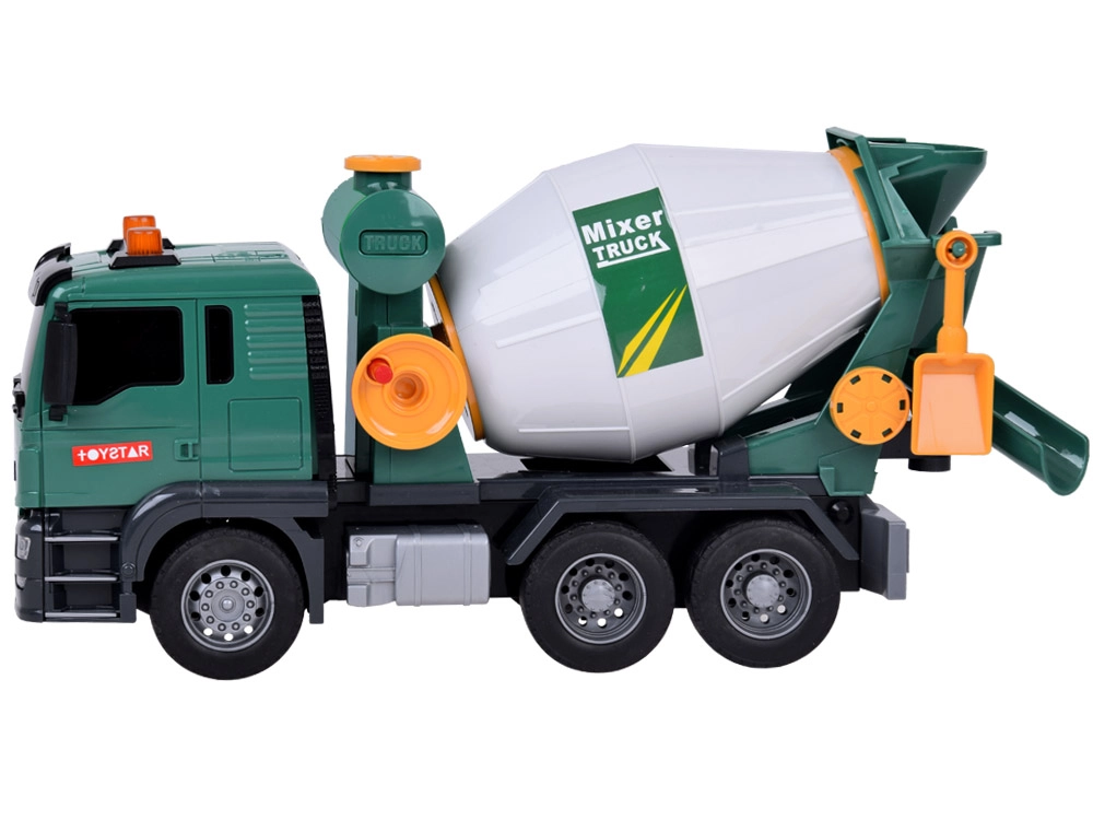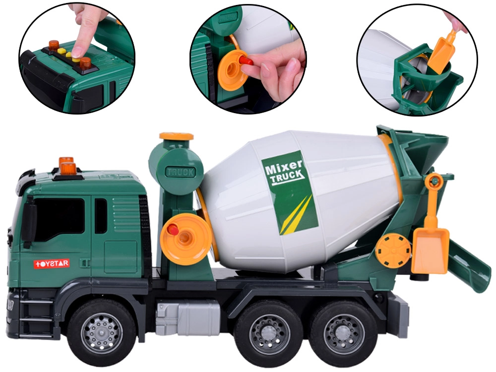 Αυτή η πράσινη μπετονιέρα είναι ιδανική για τους μικρούς λάτρεις των κατασκευαστικών οχημάτων. Είναι εξοπλισμένη με ηχητικά εφέ και κινούμενα μέρη, προσδίδοντας περισσότερο ρεαλισμό σε κάθε παιχνίδι. Τα παιδιά μπορούν να περιστρέφουν το τύμπανο της μπετονιέρας, μιμούμενα την ανάμειξη σκυροδέματος, και χάρη στο λειτουργικό χωνί μπορούν να “ρίχνουν” το μίγμα.