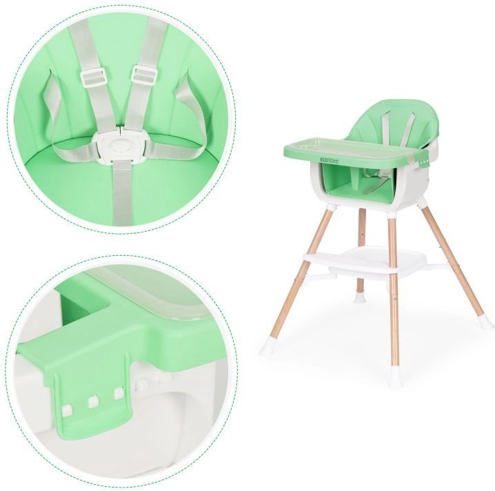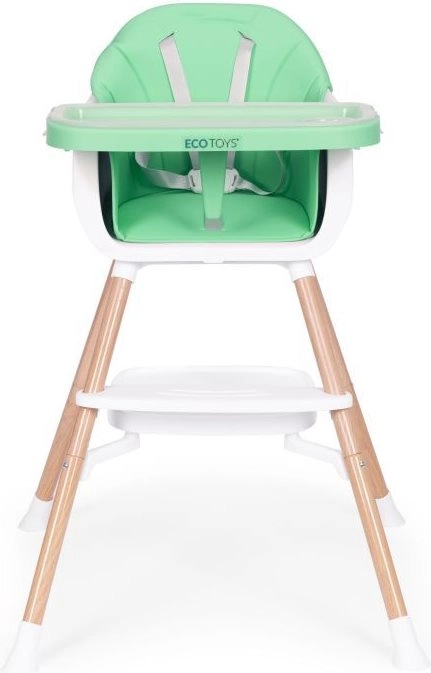 Πρακτικό παιδικό καρεκλάκι φαγητού 2 σε 1 από την ECOTOYS που συνδυάζει ψηλή καρέκλα και ανεξάρτητο καθισματάκι για κανονική καρέκλα. Προσφέρει σταθερή κατασκευή με μεταλλικά πόδια, εύκολα πλενόμενο διπλό δίσκο κατάλληλο για πλυντήριο πιάτων, ζώνη ασφαλείας 5 σημείων, αντιολισθητικές άκρες και υποπόδιο. Ιδανικό για παιδιά από 6 έως 36 μηνών με αντοχή φορτίου 20 kg.