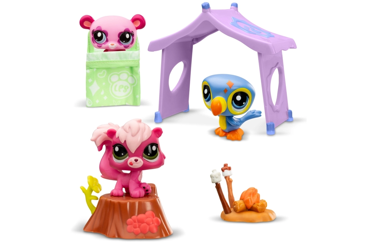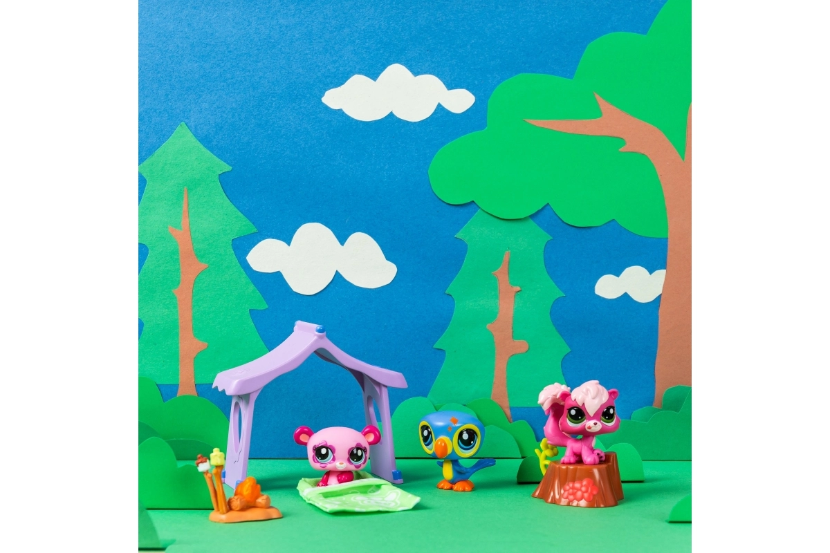 Ξεκινήστε την περιπέτεια κάμπινγκ σας με τρία μαγικά ζωάκια από το Littlest Pet Shop, συμπεριλαμβανομένων ενός πάντα, ενός τουκάν και ενός σκίουρου. Με αυτές τις φιγούρες μπορείτε να δημιουργήσετε ιστορίες και να διασκεδάσετε γύρω από μια μικρή φωτιά ή να χαλαρώσετε σε έναν άνετο κορμό δέντρου. Το σετ περιλαμβάνει:
