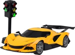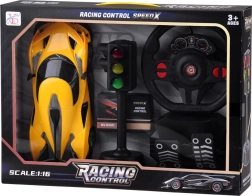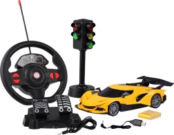 Ζήστε ρεαλιστική αγωνιστική εμπειρία με αυτό το RC σπορ αυτοκίνητο με σετ τιμόνι + πεντάλ και λειτουργικό φανάρι. Το φουτουριστικό όχημα με χαμηλό σασί, πίσω σπόιλερ και μπροστινά φώτα προσφέρει εξαιρετική πρόσφυση χάρη στα λάστιχα από καουτσούκ. Ο χειρισμός είναι διαισθητικός – με το τιμόνι κατευθύνετε την πορεία, ενώ τα πεντάλ ελέγχουν την επιτάχυνση ή την όπισθεν. Η επαναφορτιζόμενη μπαταρία μειώνει το κόστος λειτουργίας.