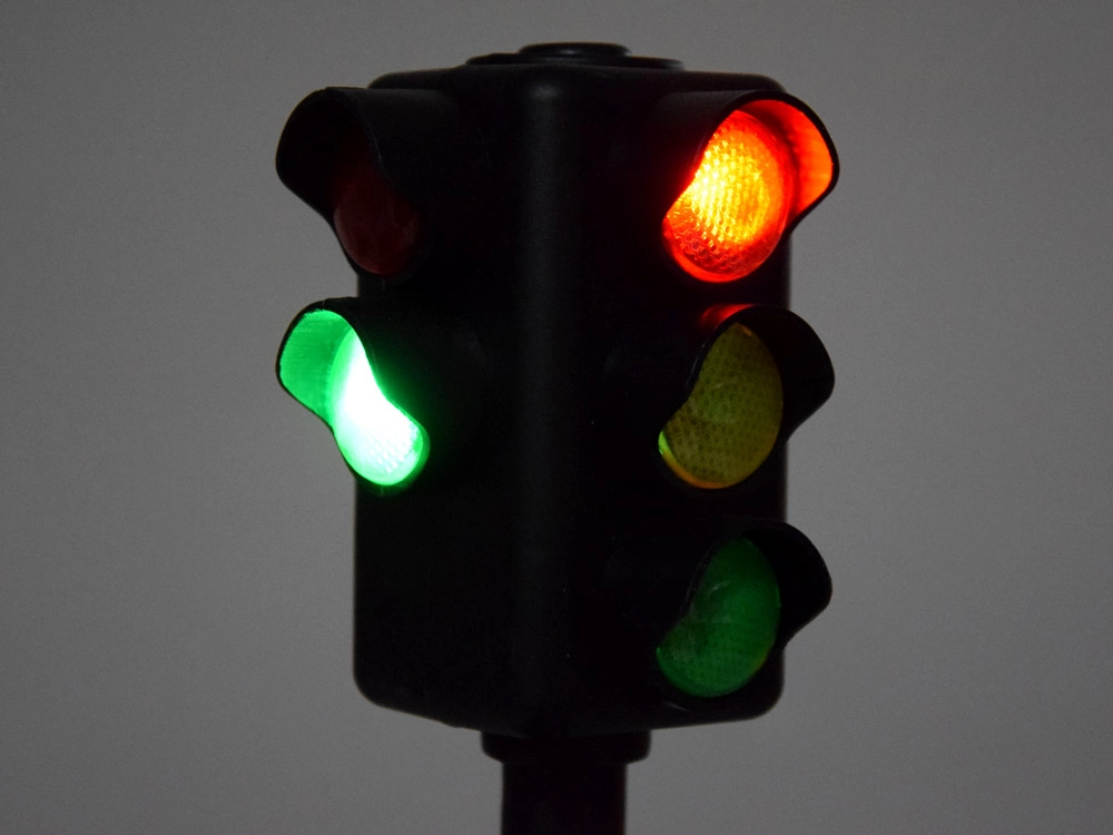 Το σετ περιλαμβάνει φωτεινό σηματοδότη με μπαταρίες, που ενισχύει τη δημιουργική φαντασία και τη μάθηση των κανόνων κυκλοφορίας.