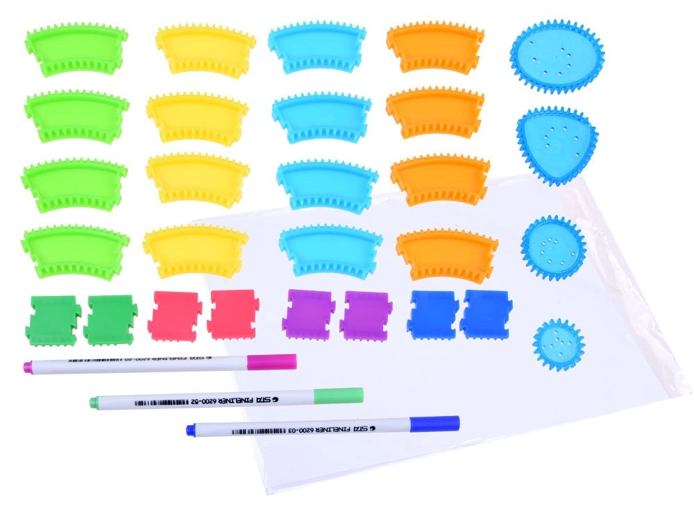 Το σετ είναι ιδανικό για την ανάπτυξη της υπομονής, της ακρίβειας του χεριού και των βασικών αρχών της γεωμετρίας. Χάρη στην απλή αρχή της καθοδήγησης του στυλό πάνω σε οδοντωτούς τροχούς, το σχέδιο είναι εύκολο και εθιστικό – κατάλληλο για αρχάριους και μικρούς καλλιτέχνες.