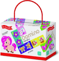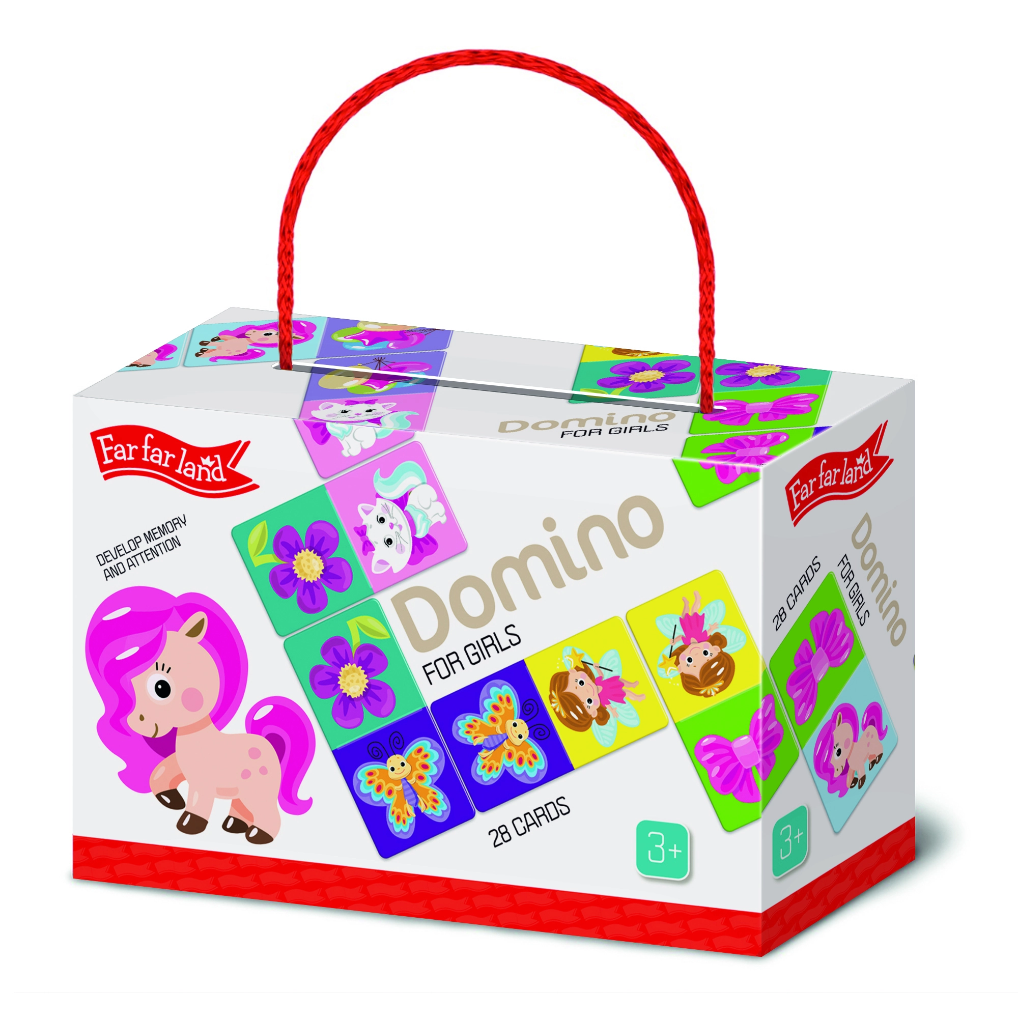Απολαύστε διασκέδαση με το κοριτσίστικο ντόμινο Far Far Land, που περιλαμβάνει 28 κάρτες γεμάτες όμορφες εικόνες. Ιδανικό παιχνίδι για 2 έως 5 παίκτες, που εγγυάται υπέροχη διασκέδαση όχι μόνο για παιδιά.