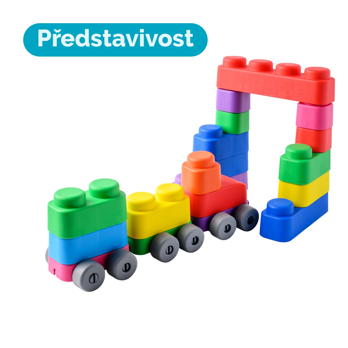 Ανακαλύψτε ατελείωτες δυνατότητες διασκέδασης με αυτό το μαλακό σετ κατασκευών Far Far Land, που περιλαμβάνει 25 πολύχρωμα μπλοκ και 16 ροδάκια, όλα φτιαγμένα από ασφαλές υλικό.