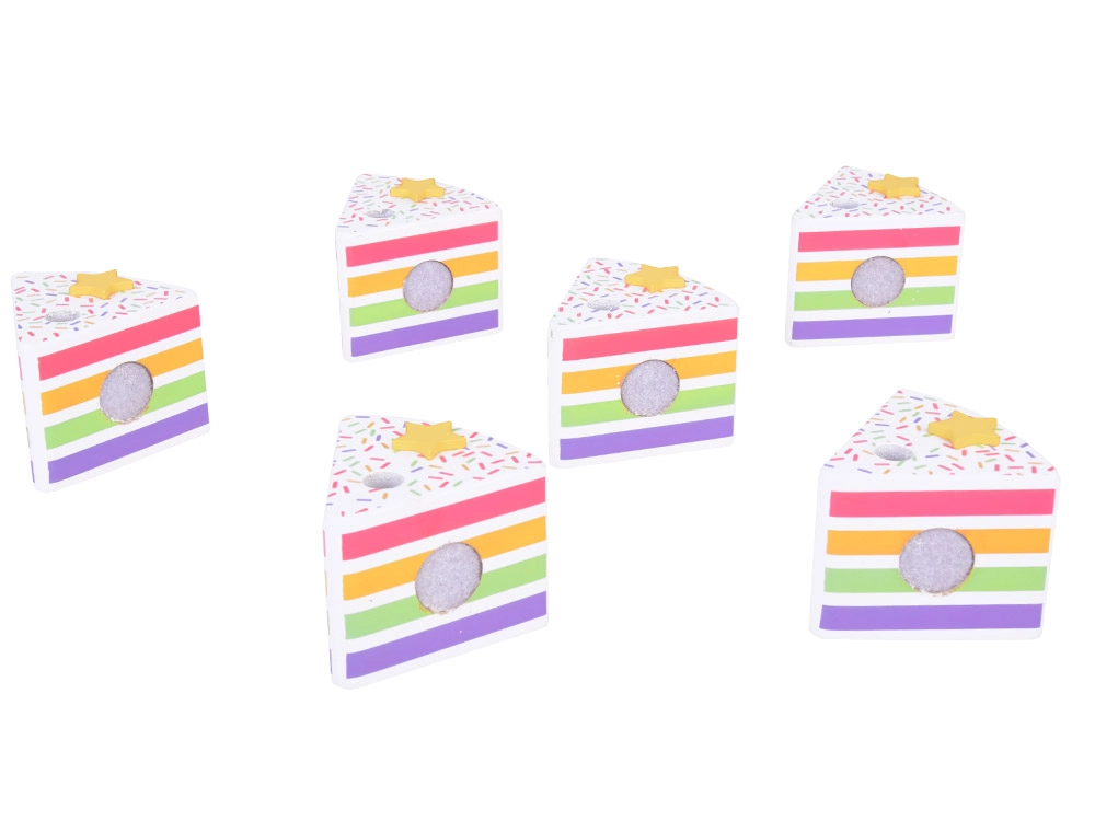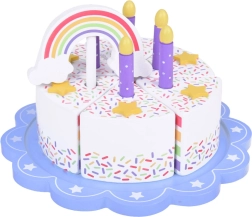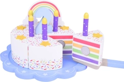 Στην κορυφή της τούρτας υπάρχει ένα αφαιρούμενο πολύχρωμο ουράνιο τόξο, που χαρίζει μαγεία σε όλο το σετ. Κάθε κομμάτι έχει θέση για ένα κεράκι, καθιστώντας την τέλεια επιλογή για παιχνίδι γενεθλίων.