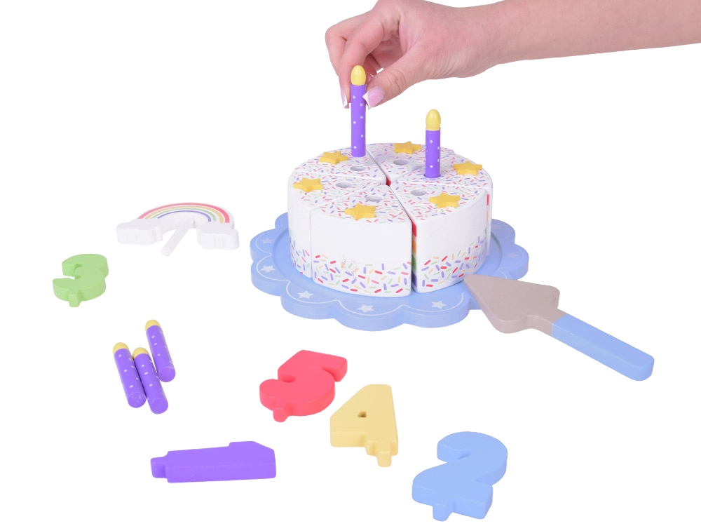 Η τούρτα είναι κατασκευασμένη από ποιοτικό ξύλο, που εξασφαλίζει ανθεκτικότητα και ασφάλεια για το παιδικό παιχνίδι.
