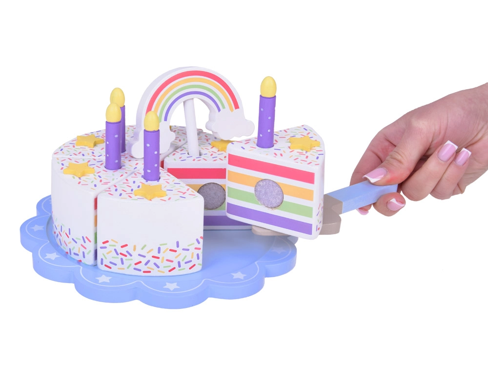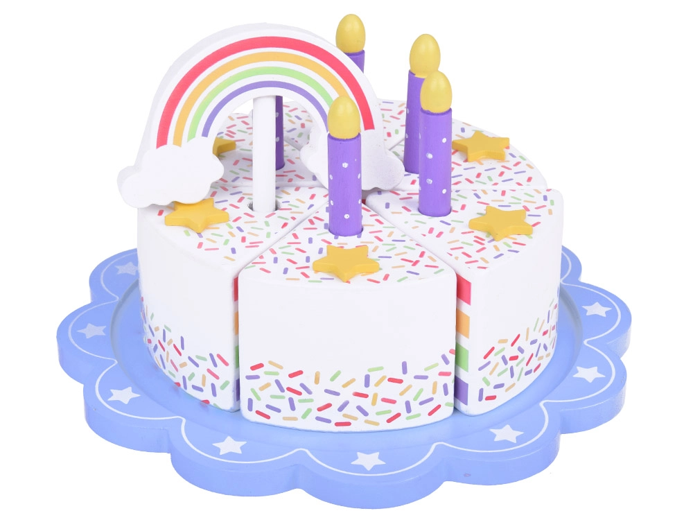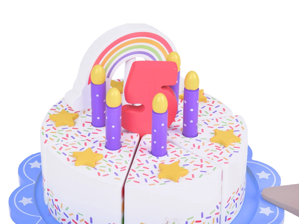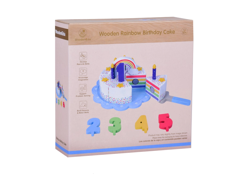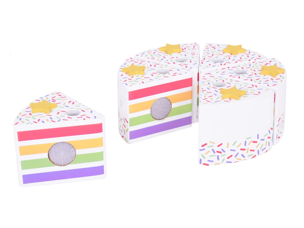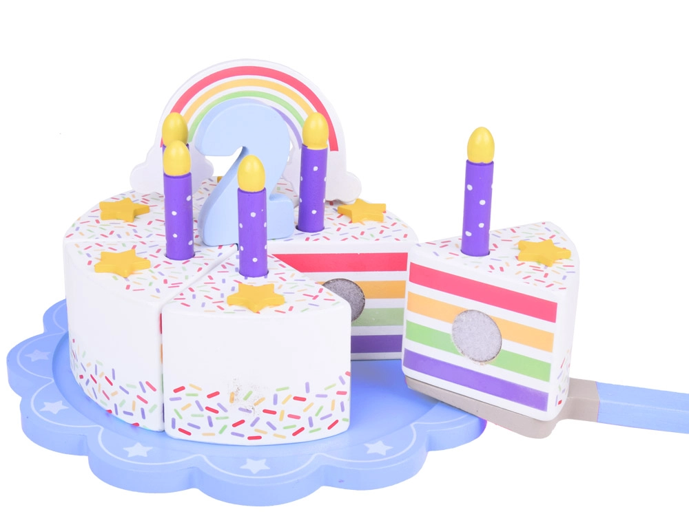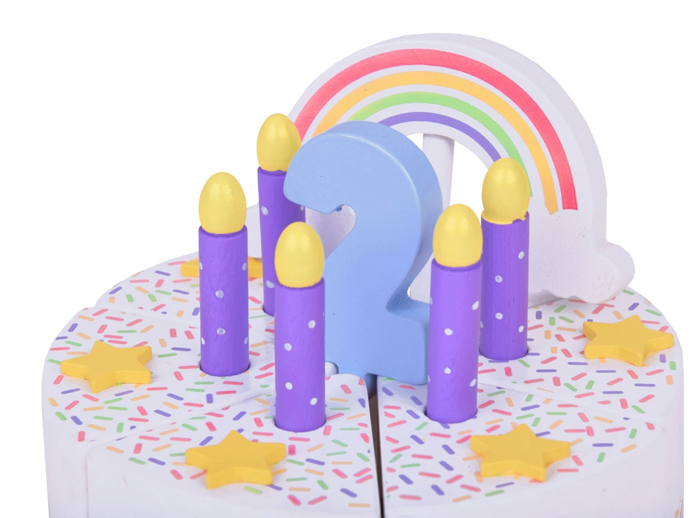 Σας παρουσιάζουμε την ξύλινη ουράνιο τόξο τούρτα γενεθλίων, που προσφέρει ατέλειωτες ώρες διασκέδασης για τα παιδιά. Αυτή η παιχνιδιάρικη τούρτα με τα έξι πολύχρωμα κομμάτια της μοιάζει με αληθινό γλύκισμα, που τα παιδιά μπορούν να κόβουν και να ενώνουν ξανά.
