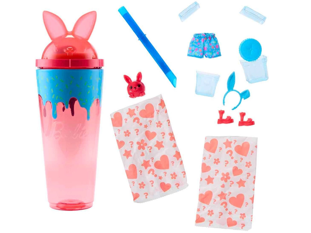 Μπείτε στον κόσμο της αισθητηριακής διασκέδασης με τη Barbie Pop Reveal Shakes – μια κούκλα κρυμμένη σε πολύχρωμο κύπελλο με αυτιά λαγού. Σας περιμένουν έως και 8 θεματικές εκπλήξεις, λαμπερή γλίτσα για απτική εξερεύνηση, ένα χαριτωμένο κουνελάκι με άρωμα shake και μια μαγική αλλαγή εμφάνισης της κούκλας με ζεστό ή κρύο νερό.