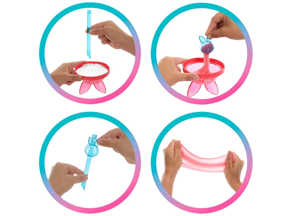 Ανοίξτε το πολύχρωμο κύπελλο με αυτιά λαγού και ανακαλύψτε έως και 8 εκπλήξεις, συμπεριλαμβανομένης μιας μαλακής, ελαστικής και λαμπερής γλίτσας για αισθητηριακό παιχνίδι.