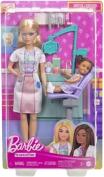 Παίξτε την οδοντίατρο με την Barbie και τον ασθενή της. Το σετ περιλαμβάνει λευκή ρόμπα, οδοντιατρικά εργαλεία και οδοντιατρική καρέκλα.